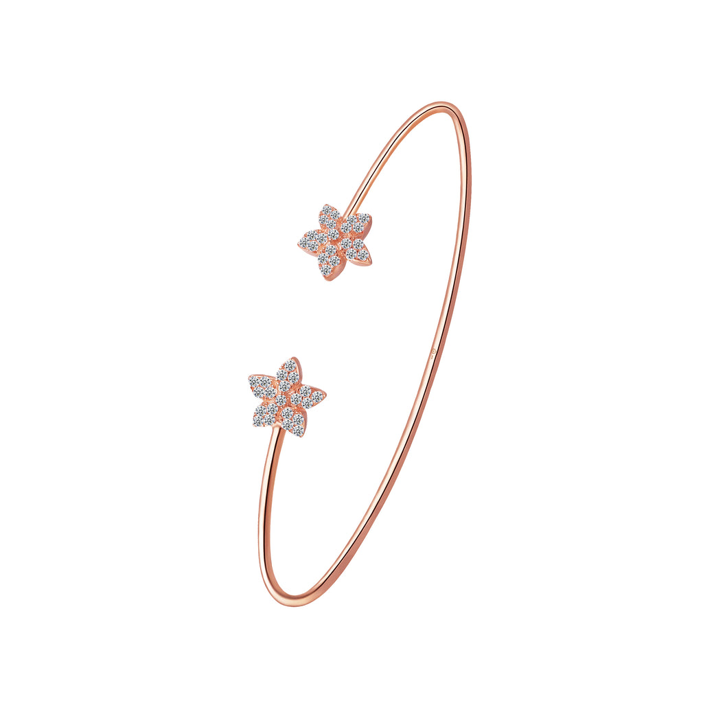 تصنع كل قطعة وفقا لأعلى معايير الجودة وباستخدام أفضل المواد وأعلاها جودة. هذه القطعة مطلية بالذهب عيار 18 قيراط ومزينة بوردة براقة من كل جانب بتلات مرصعة بالالماس الصناعي تحيط بفص دائري.