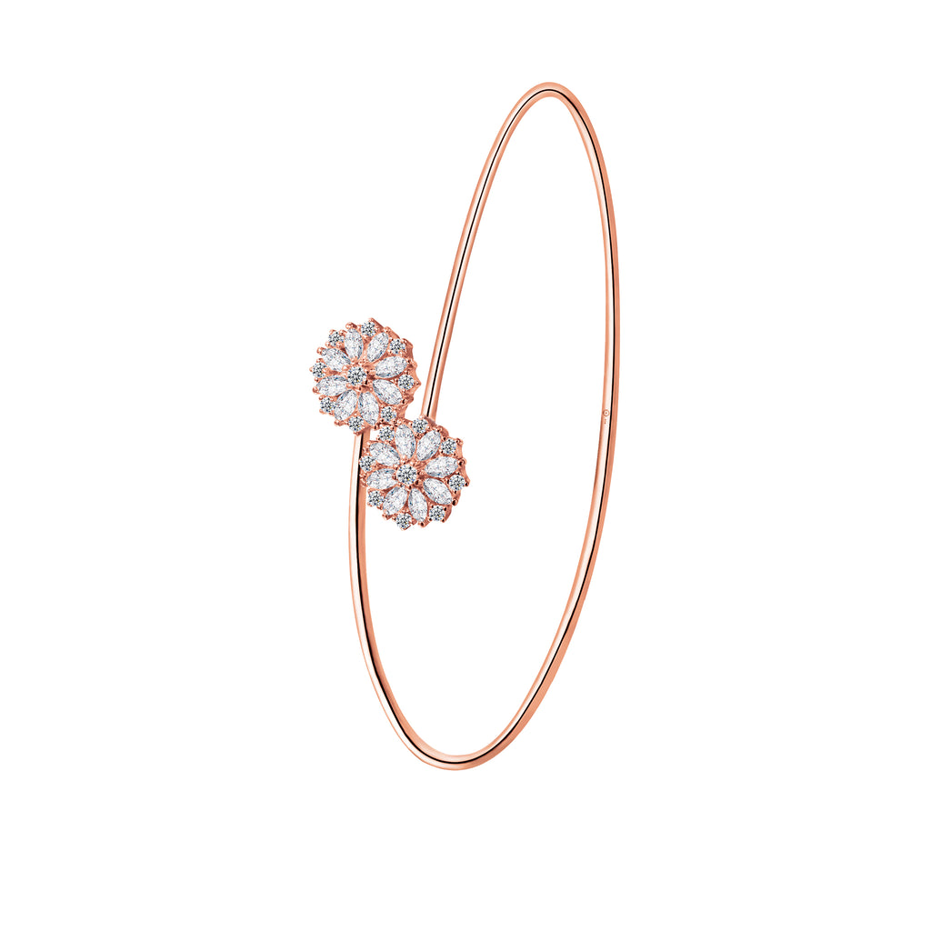 تصنع كل قطعة وفقا لأعلى معايير الجودة وباستخدام أفضل المواد وأعلاها جودة. هذه القطعة مطلية بالذهب عيار 18 قيراط ومزينة بوردة براقة من كل جانب ببتلات مرصعة بالالماس الصناعي.