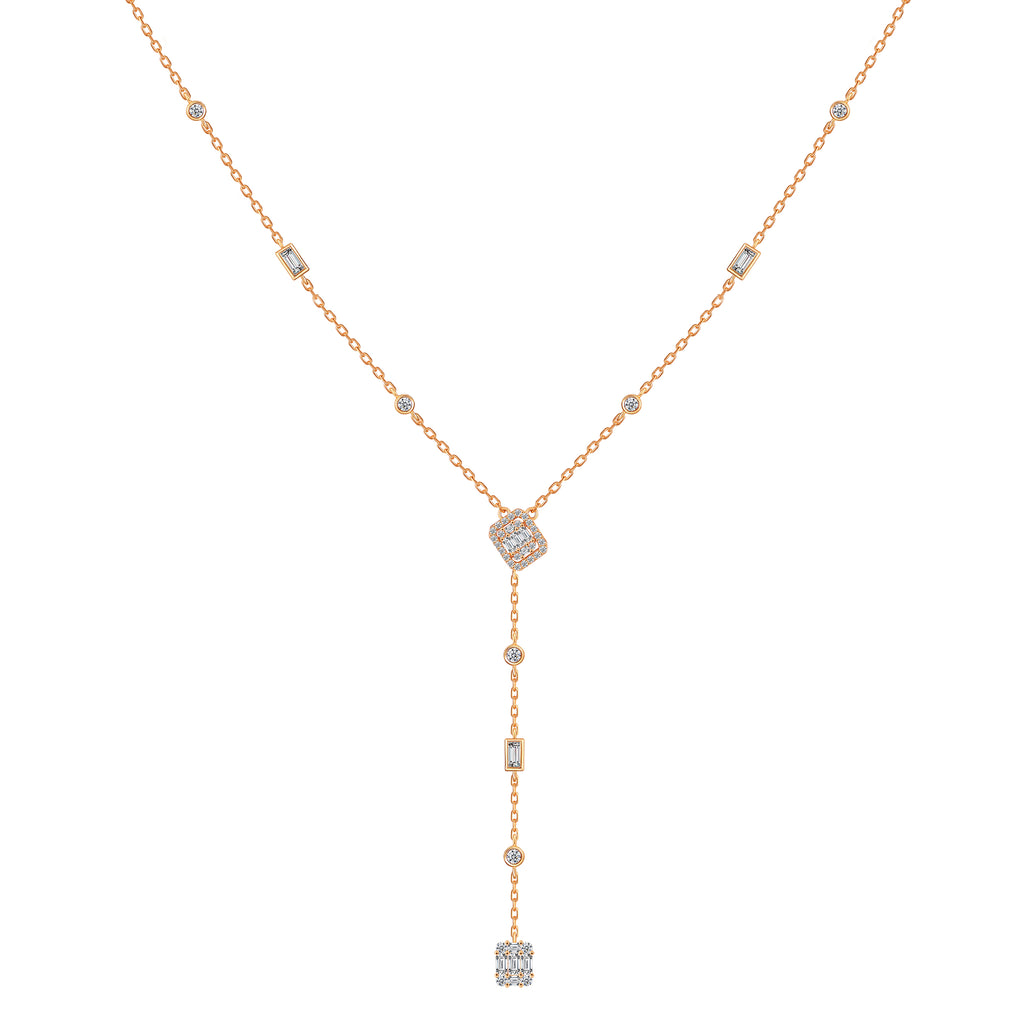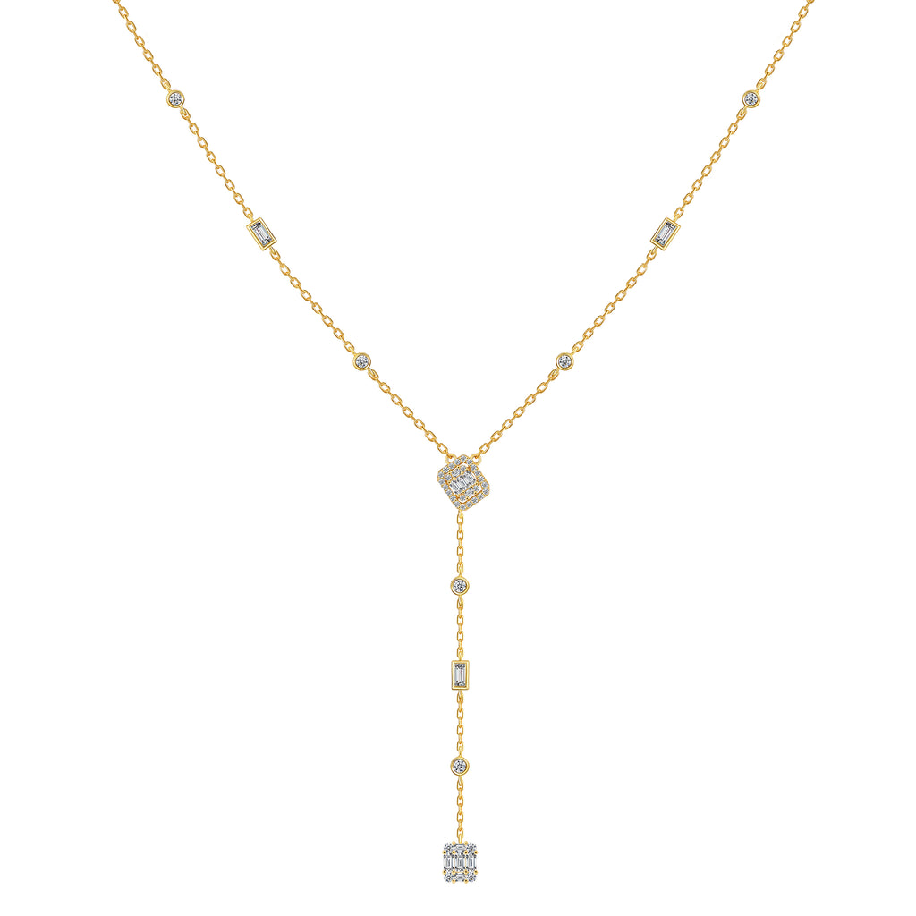 تصنع كل قطعة وفقا لأعلى معايير الجودة وباستخدام أفضل المواد وأعلاها جودة. عقد رقيق وناعم من الفضة مطلي بالذهب عيار 18 قيراط مع سلسلة متدلية تتضمن فصوصا مربعة الشكل بتصميم جذاب مناسب لإطلالة أنيقة .