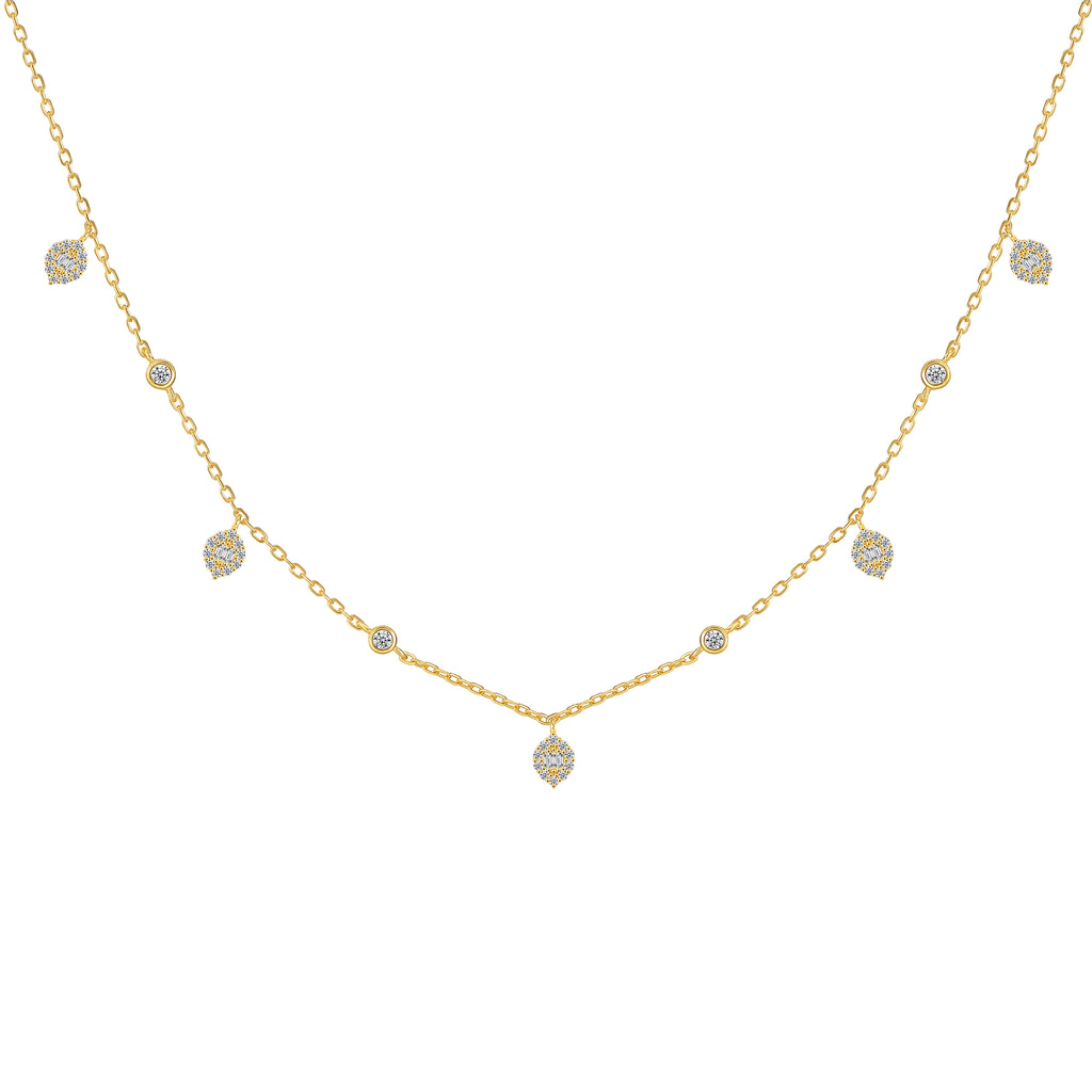 تصنع كل قطعة وفقا لأعلى معايير الجودة وباستخدام أفضل المواد وأعلاها جودة. عقد رقيق وناعم من الفضة مطلي بالذهب عيار 18 يتضمن فصوصا لامعة على شكل قصة بيضاوية والأخرى دائرية.