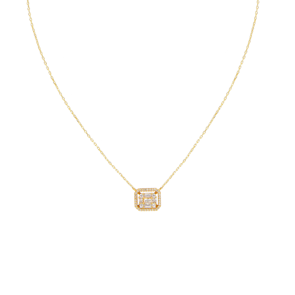 تصنع كل قطعة وفقا لأعلى معايير الجودة وباستخدام أفضل المواد وأعلاها جودة. عقد رقيق وناعم من الفضة مطلي بالذهب عيار 18 مزين بقلادة لامعة مربعة تزين عنقك .