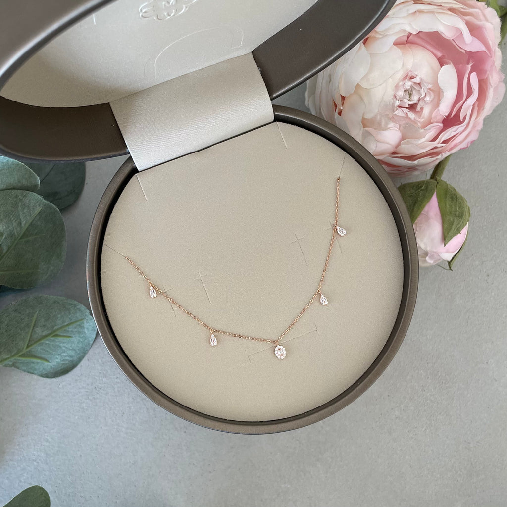 • يتوفر العقد بثلاثة ألوان: الذهب الأبيض والذهب الوردي والذهب الأصفر.