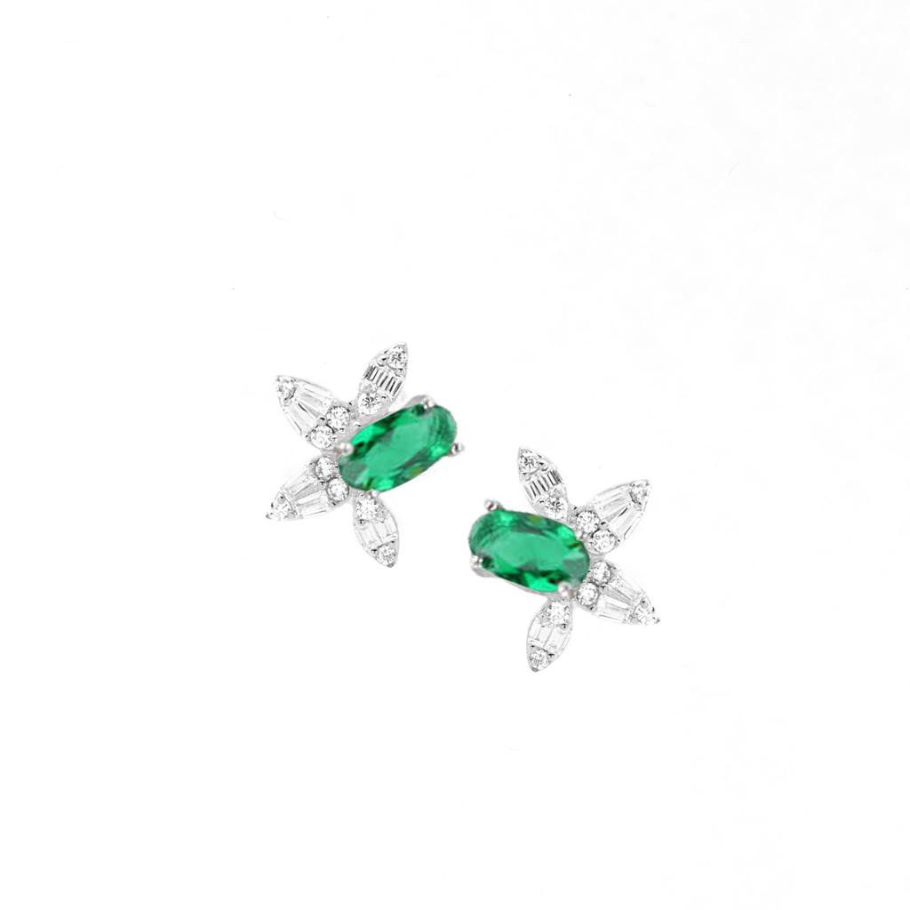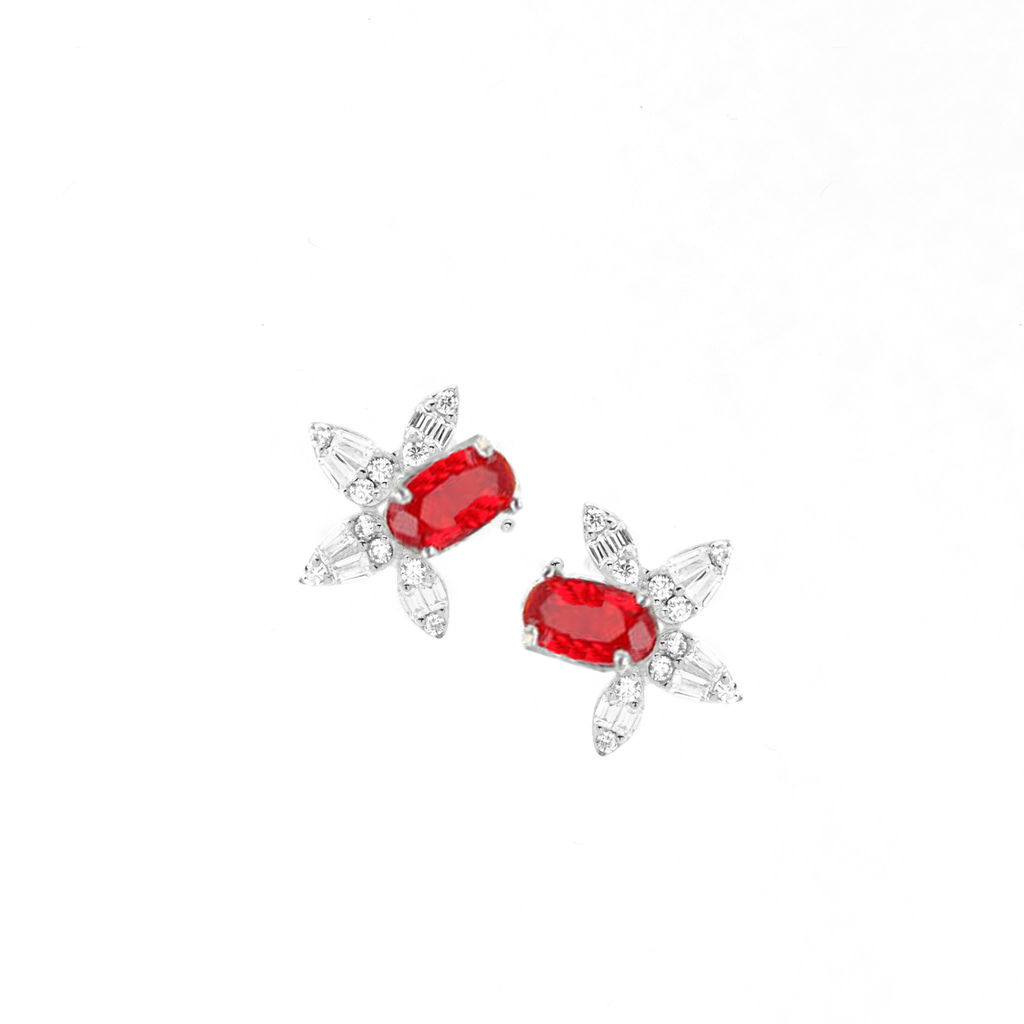 تصنع كل قطعة وفقا لأعلى معايير الجودة وباستخدام أفضل المواد وأعلاها جودة. أقراط بتصميم أنيق وناعم من الفضة مطلية بالذهب عيار 18 قيراط ومزينة بفص ملون في المنتصف.