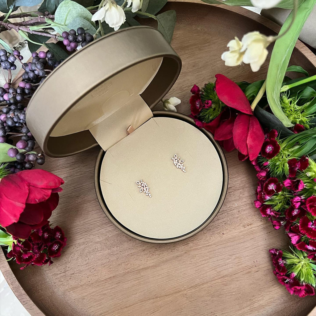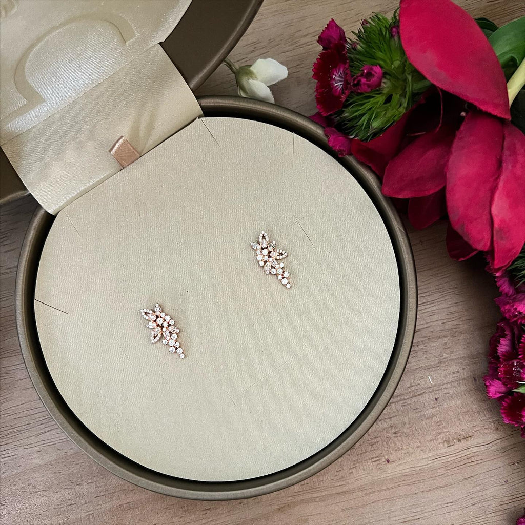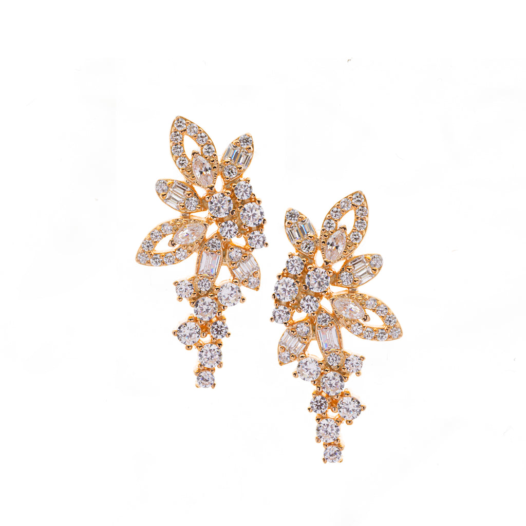 تصنع كل قطعة وفقا لأعلى معايير الجودة وباستخدام أفضل المواد وأعلاها جودة. أقراط بتصميم أنيق وناعم من الفضة مطلية بالذهب عيار 18 قيراط ومزينة بفص في المنتصف.