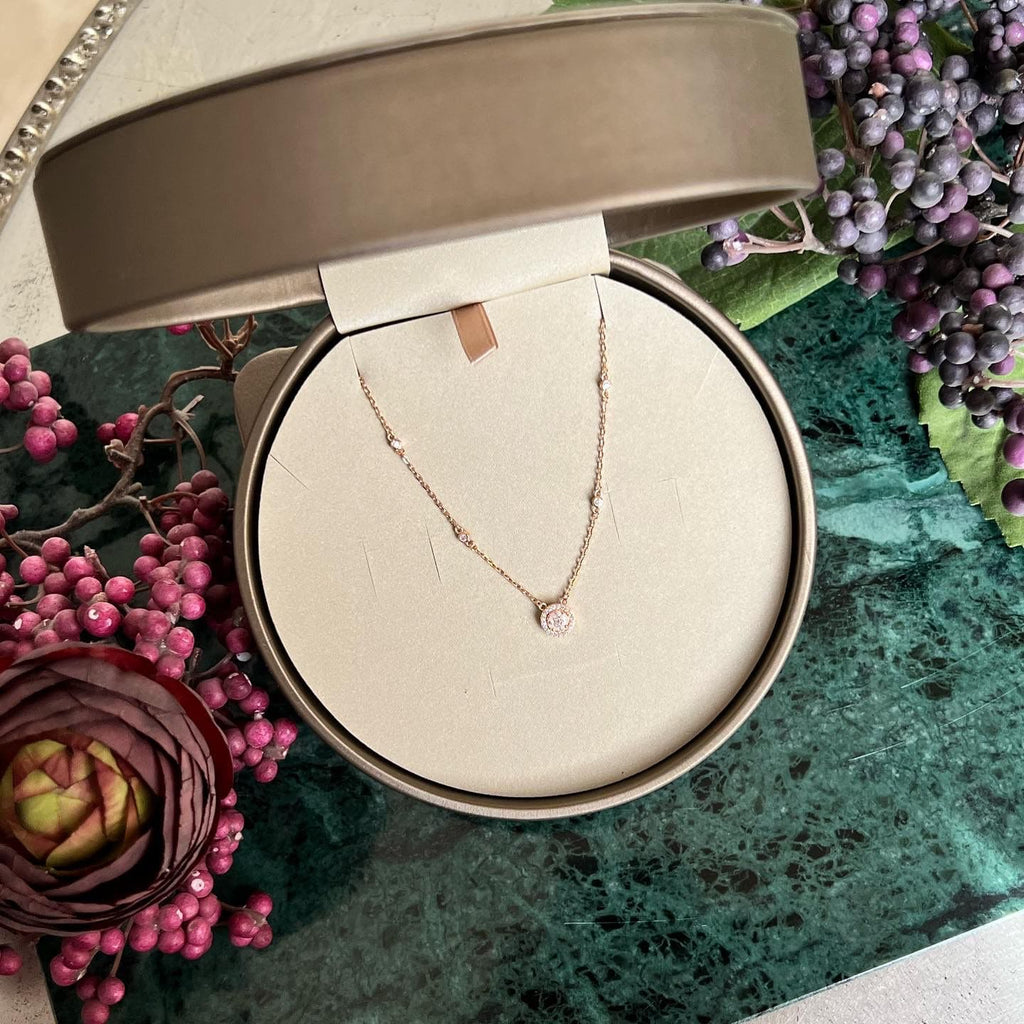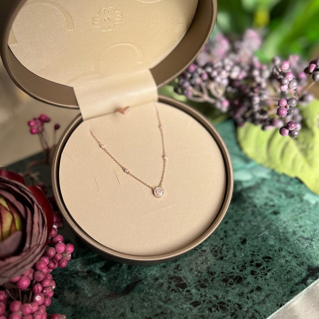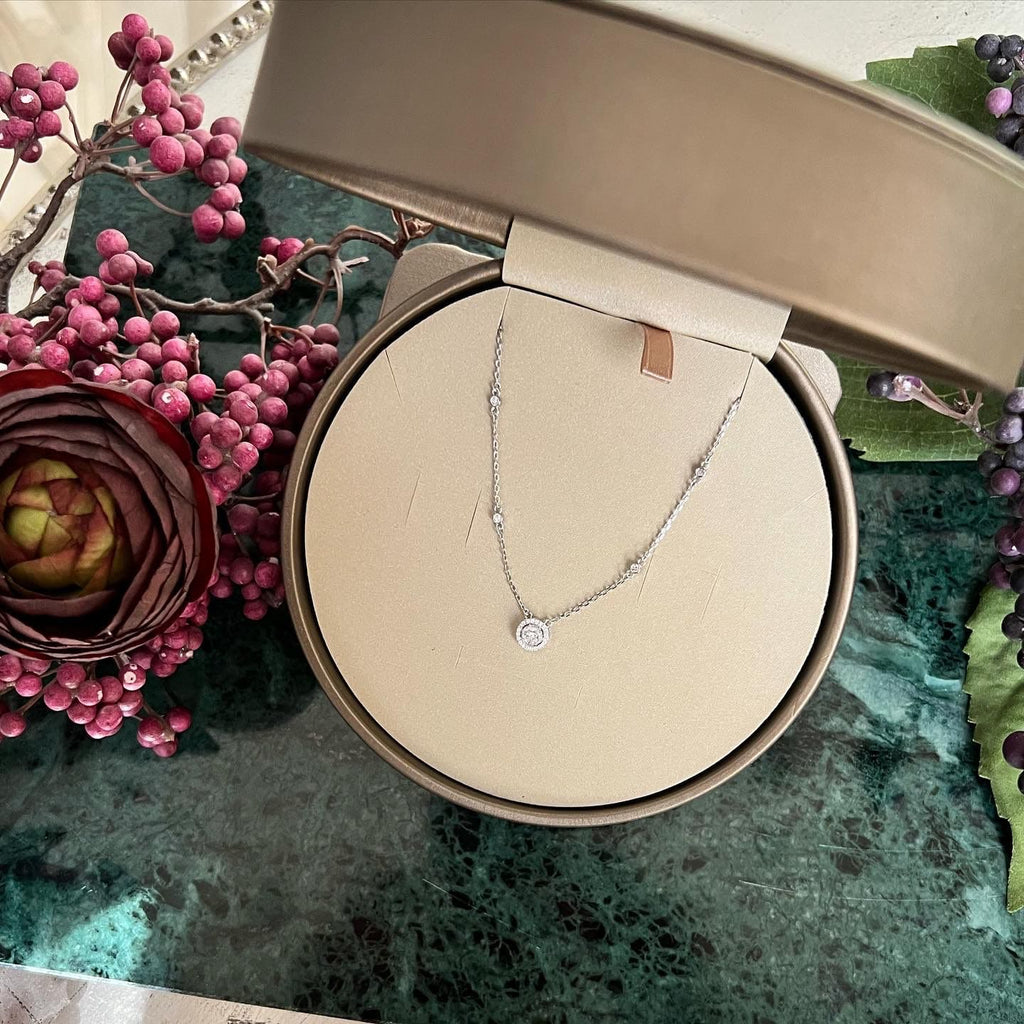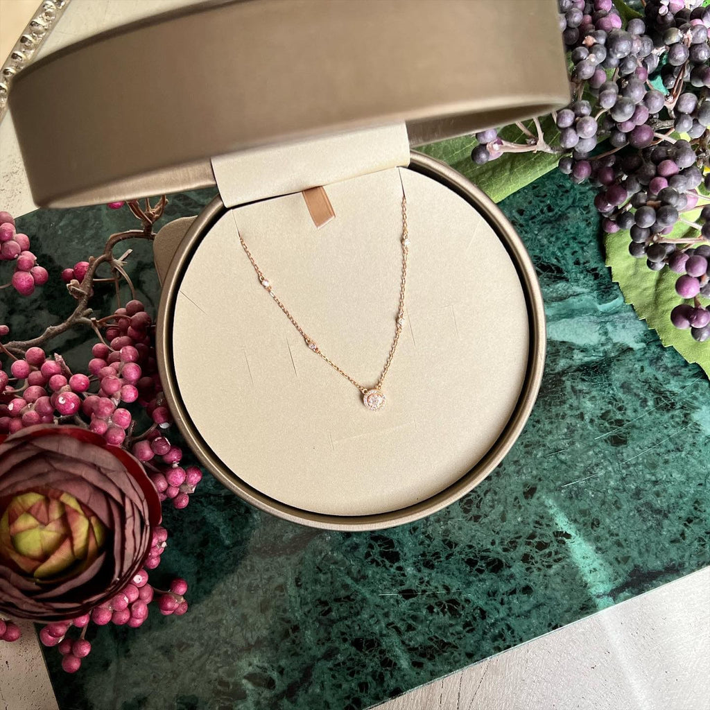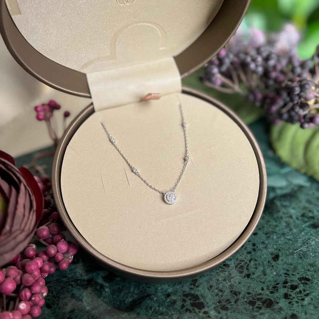 • يتوفر العقد بثلاثة ألوان: الذهب الأبيض والذهب الوردي والذهب الأصفر.