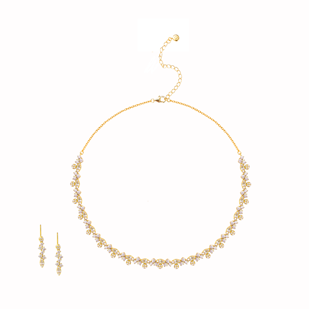 • يتوفر الطقم بثلاثة ألوان: الذهب الأبيض والذهب الوردي والذهب الأصفر.