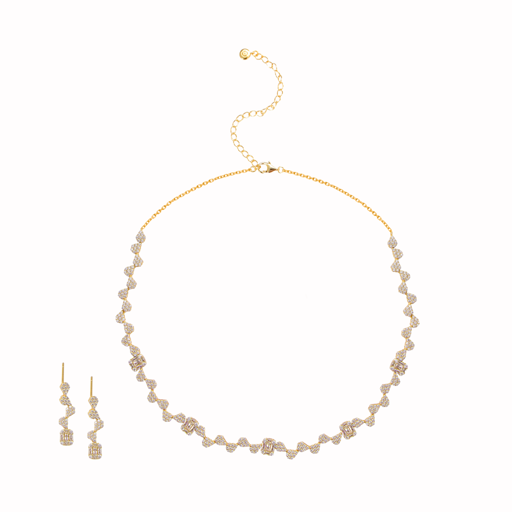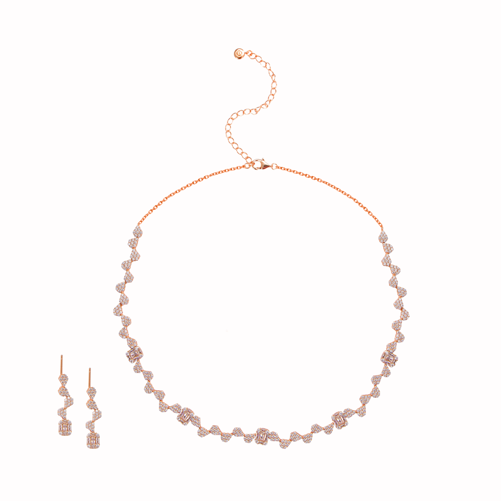 • يتوفر الطقم بثلاثة ألوان: الذهب الأبيض والذهب الوردي والذهب الأصفر.
