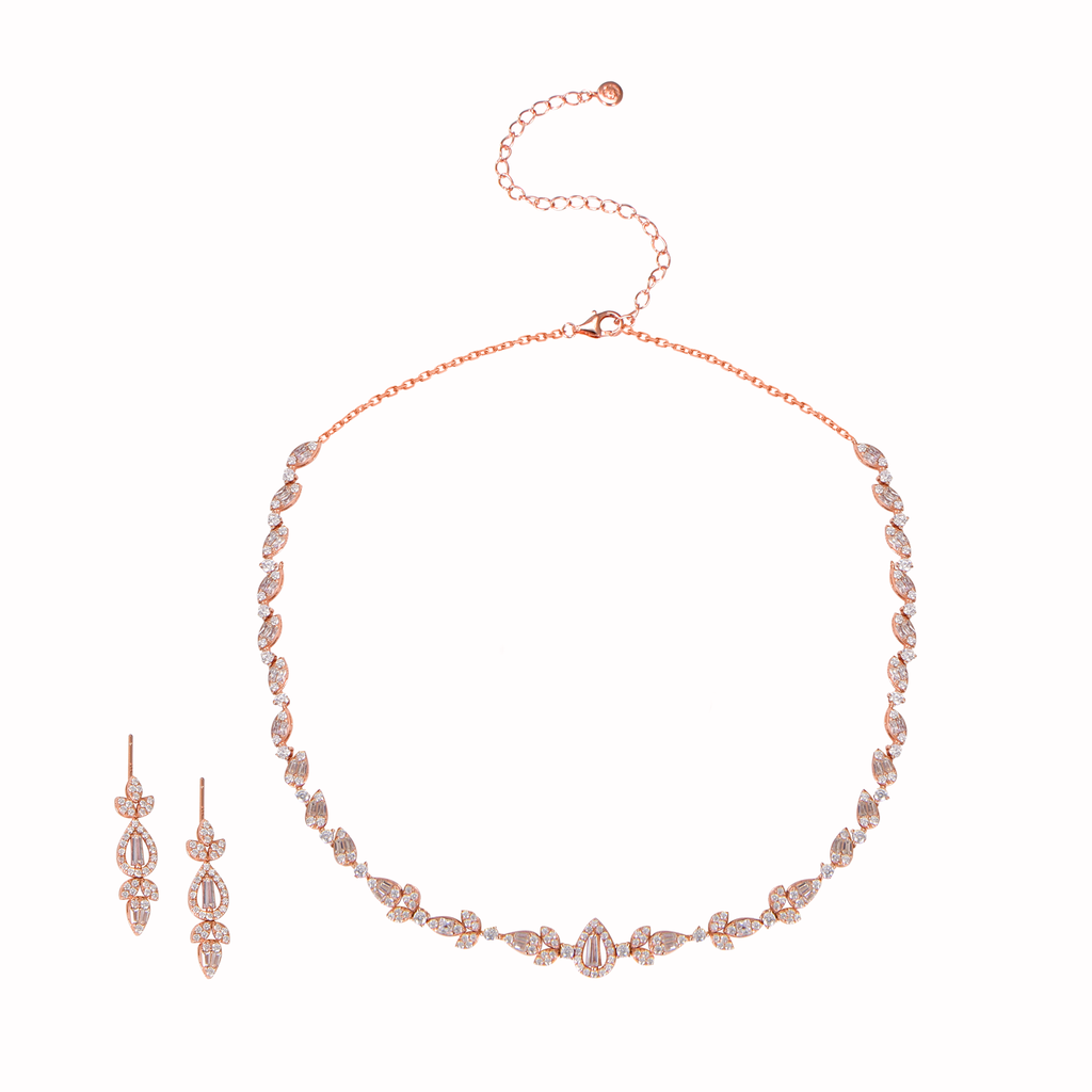 • يتوفر الطقم بثلاثة ألوان: الذهب الأبيض والذهب الوردي والذهب الأصفر.
