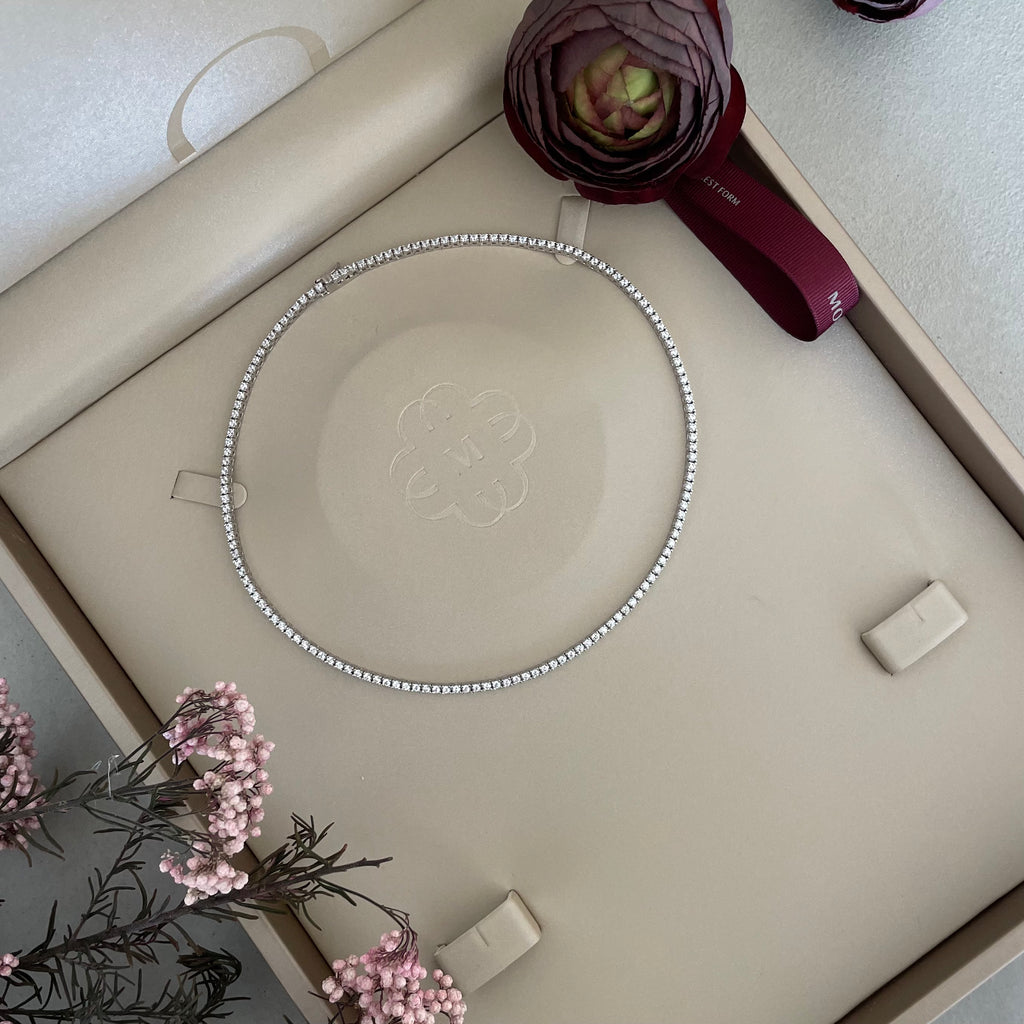 • يتوفر العقد بثلاثة ألوان: الذهب الأبيض والذهب الوردي والذهب الأصفر.