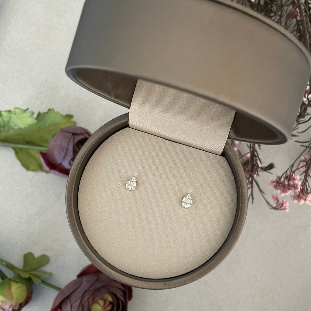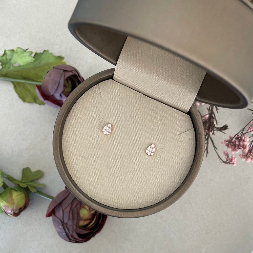 تصنع كل قطعة وفقا لأعلى معايير الجودة وباستخدام أفضل المواد وأعلاها جودة. أقراط بتصميم أنيق وناعم من الفضة مطلية بالذهب عيار 18 قيراط ومزينة بفص في المنتصف.