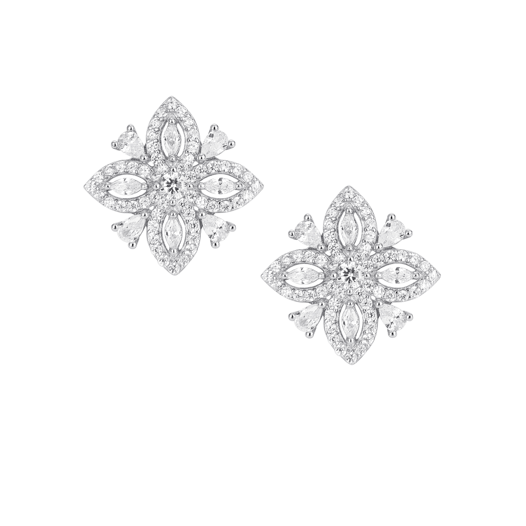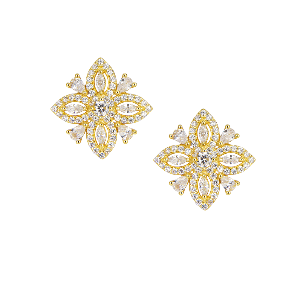 تصنع كل قطعة وفقا لأعلى معايير الجودة وباستخدام أفضل المواد وأعلاها جودة. أقراط بتصميم أنيق وناعم من الفضة مطلية بالذهب عيار 18 قيراط ومزينة بفص في المنتصف.
