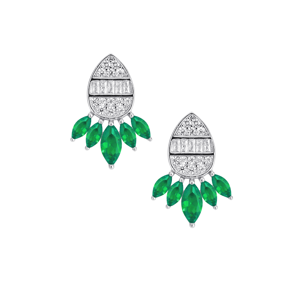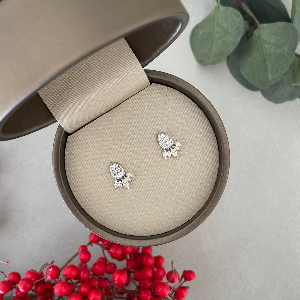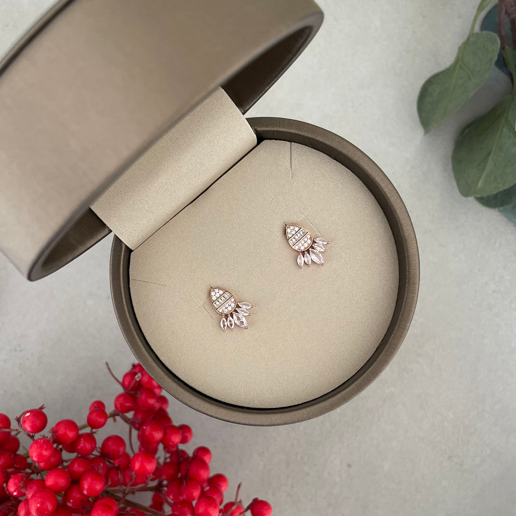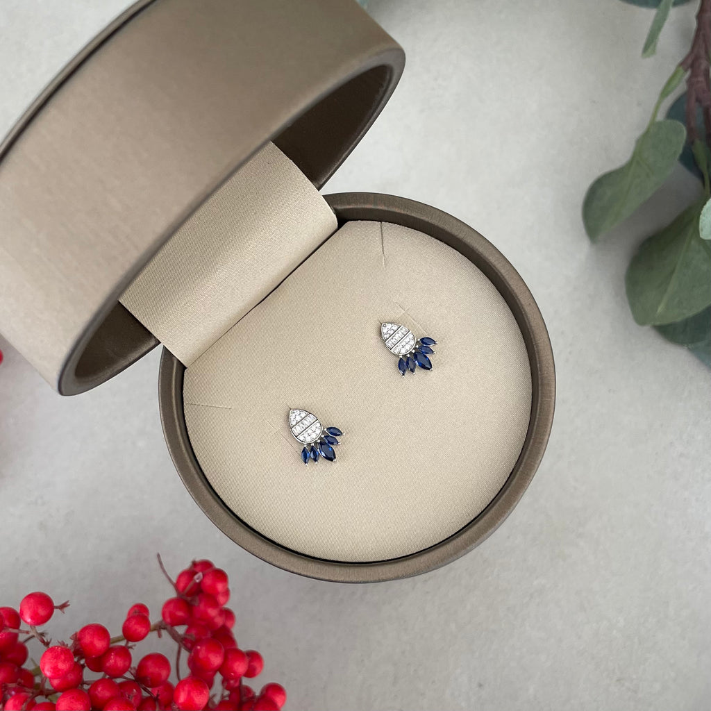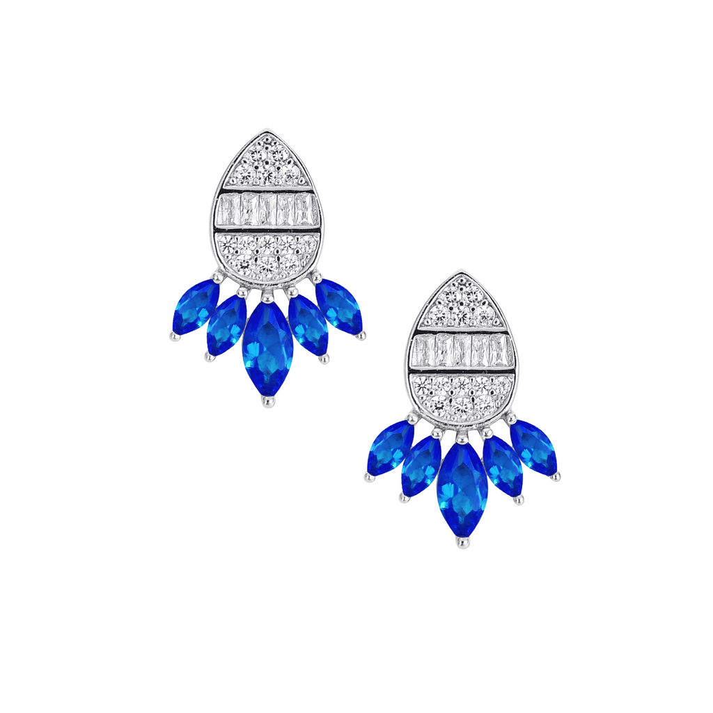 تصنع كل قطعة وفقا لأعلى معايير الجودة وباستخدام أفضل المواد وأعلاها جودة. أقراط بتصميم أنيق وناعم من الفضة مطلية بالذهب عيار 18 قيراط ومزينة بفص في المنتصف.