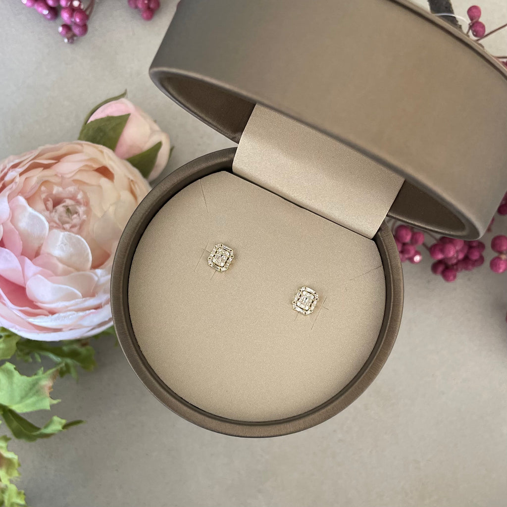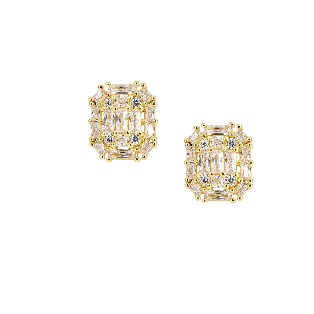 تصنع كل قطعة وفقا لأعلى معايير الجودة وباستخدام أفضل المواد وأعلاها جودة. أقراط بتصميم أنيق وناعم من الفضة مطلية بالذهب عيار 18 قيراط ومزينة بفص في المنتصف.