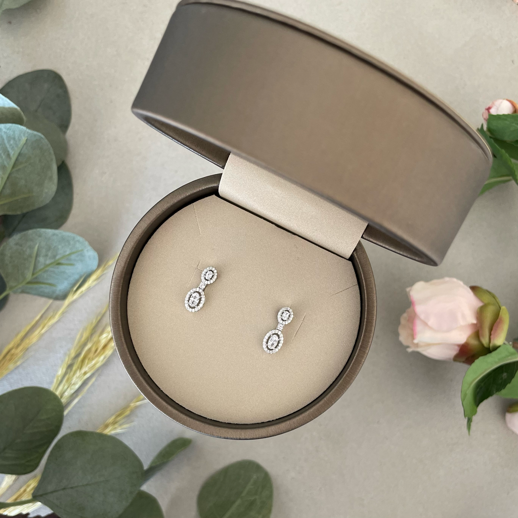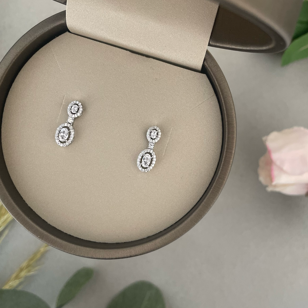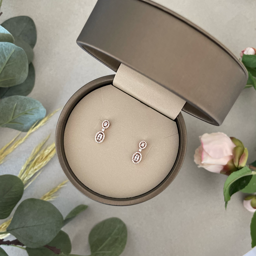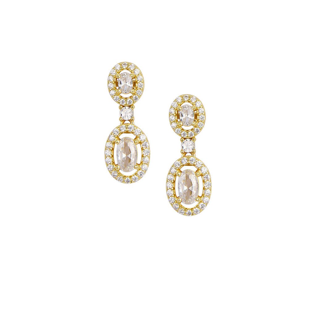 تصنع كل قطعة وفقا لأعلى معايير الجودة وباستخدام أفضل المواد وأعلاها جودة. أقراط بتصميم أنيق وناعم من الفضة مطلية بالذهب عيار 18 قيراط ومزينة بفص في المنتصف.