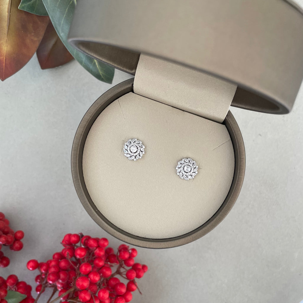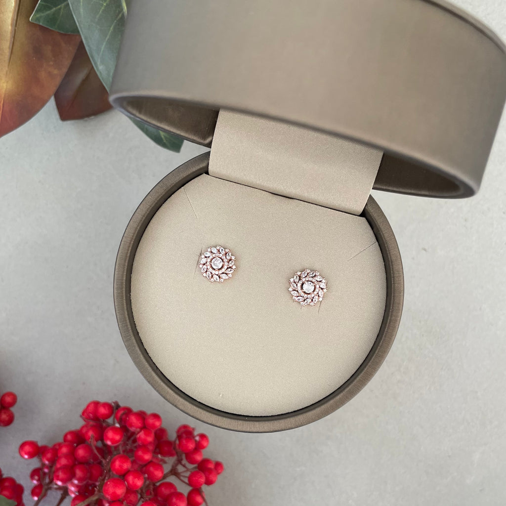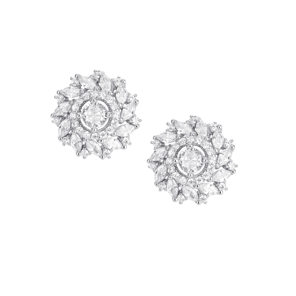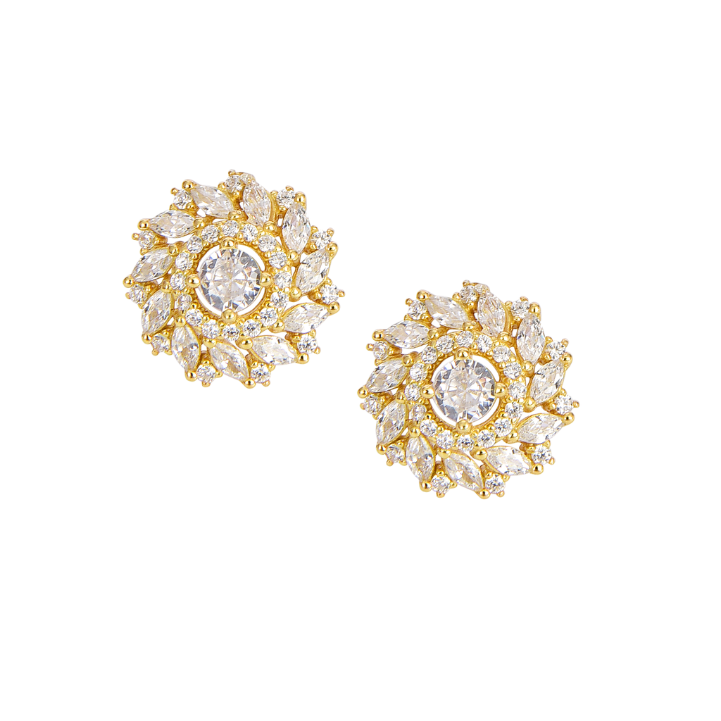 تصنع كل قطعة وفقا لأعلى معايير الجودة وباستخدام أفضل المواد وأعلاها جودة. أقراط بتصميم أنيق وناعم من الفضة مطلية بالذهب عيار 18 قيراط ومزينة بفص في المنتصف.