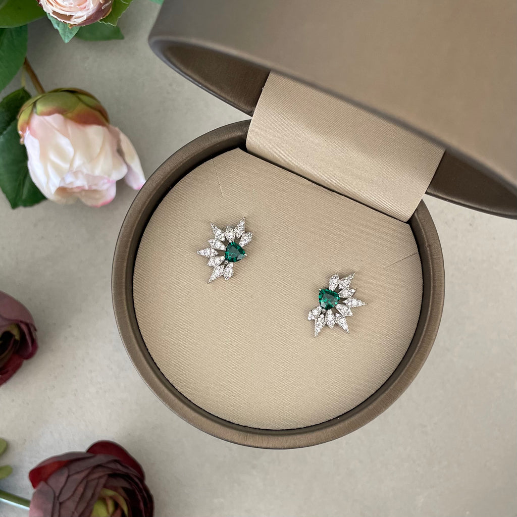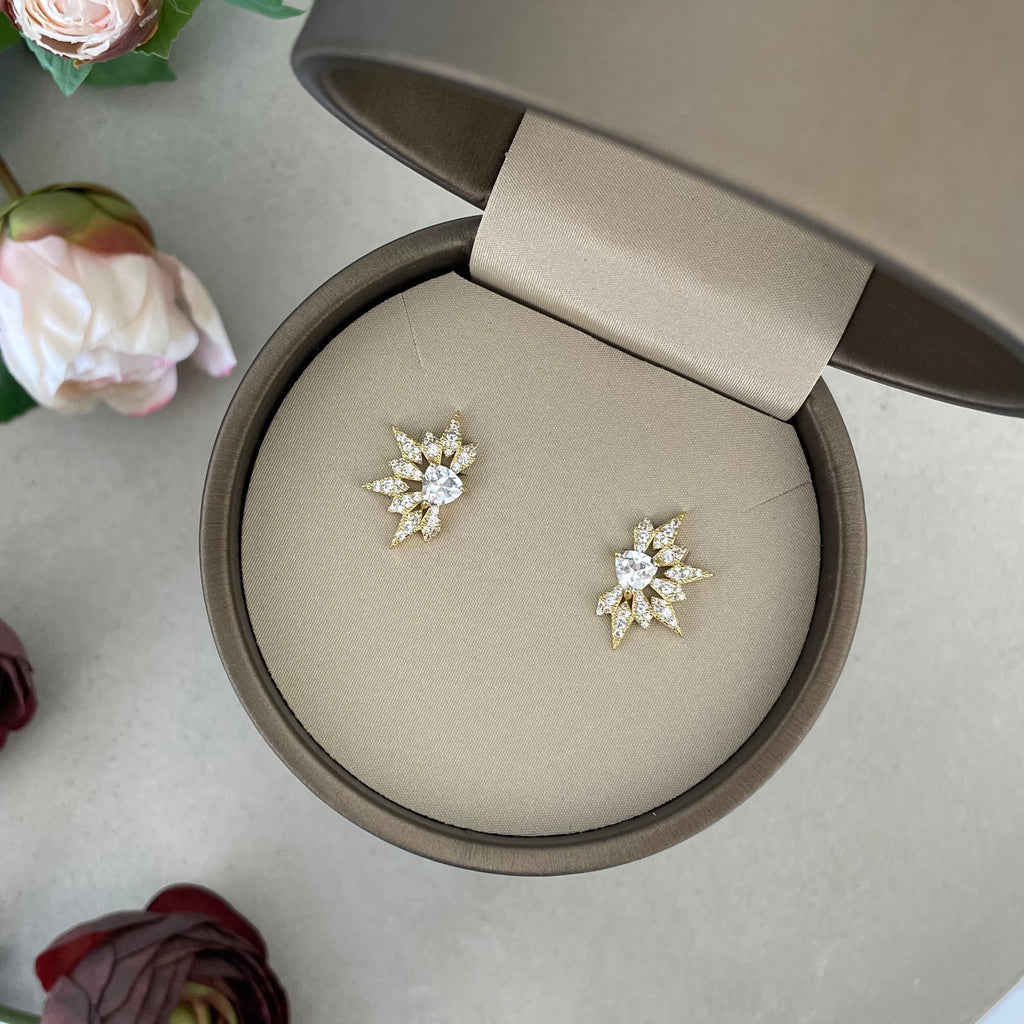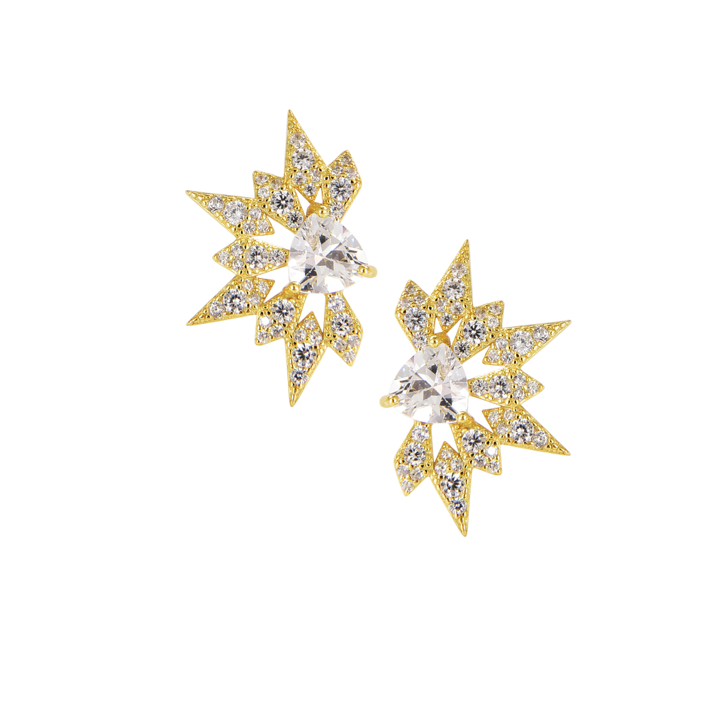 تصنع كل قطعة وفقا لأعلى معايير الجودة وباستخدام أفضل المواد وأعلاها جودة. أقراط بتصميم أنيق وناعم من الفضة مطلية بالذهب عيار 18 قيراط ومزينة بفص ملون في المنتصف.