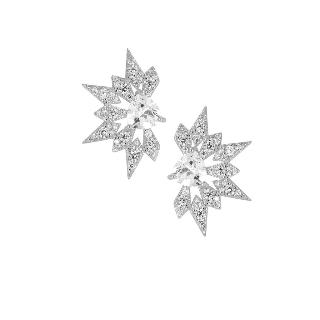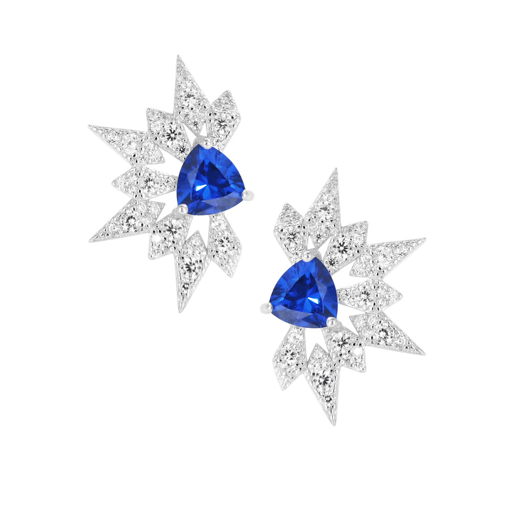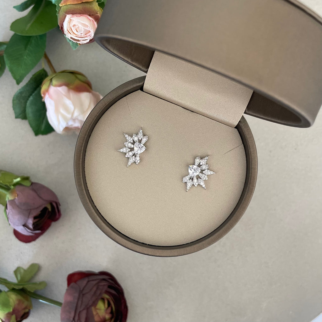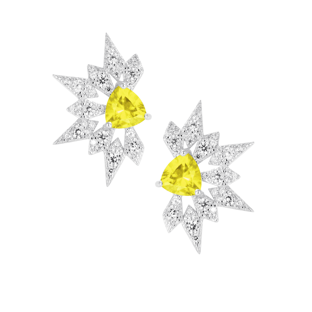 تصنع كل قطعة وفقا لأعلى معايير الجودة وباستخدام أفضل المواد وأعلاها جودة. أقراط بتصميم أنيق وناعم من الفضة مطلية بالذهب عيار 18 قيراط ومزينة بفص ملون في المنتصف.