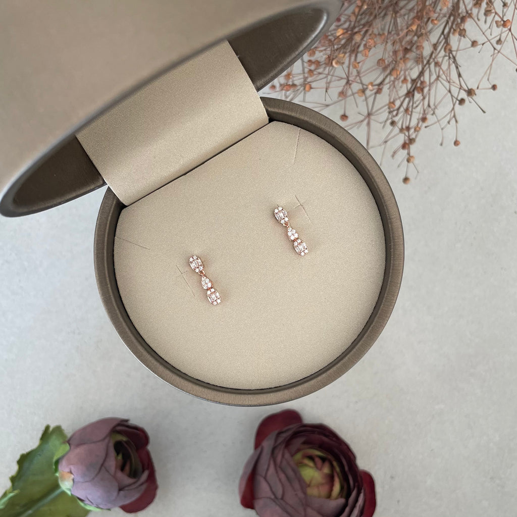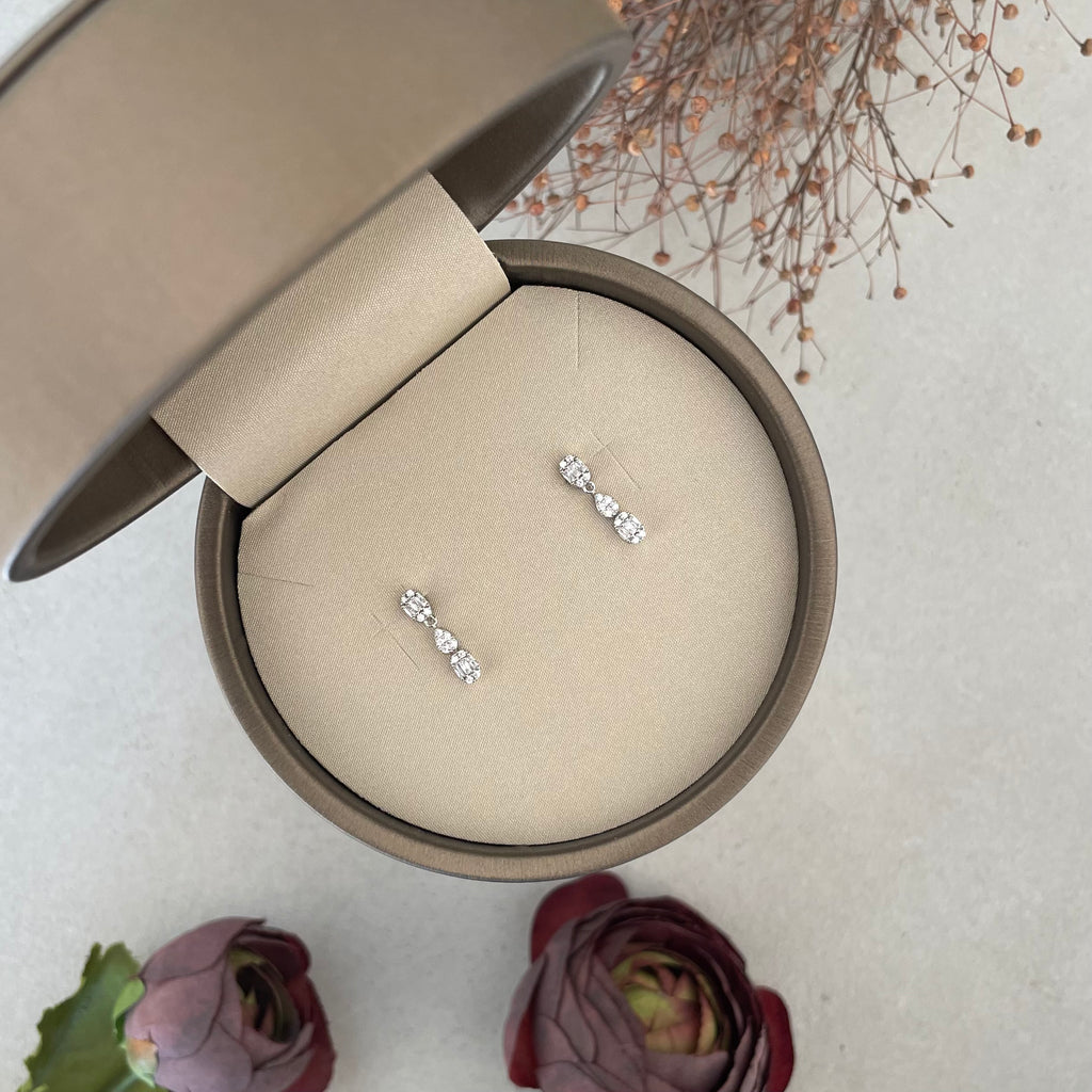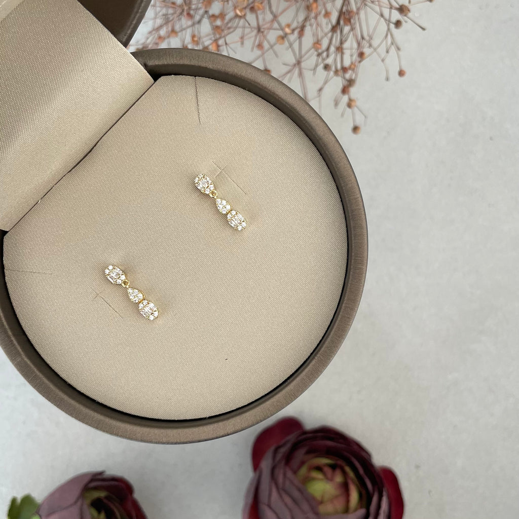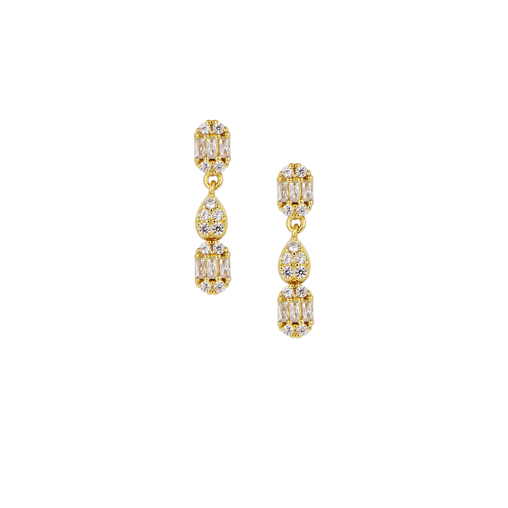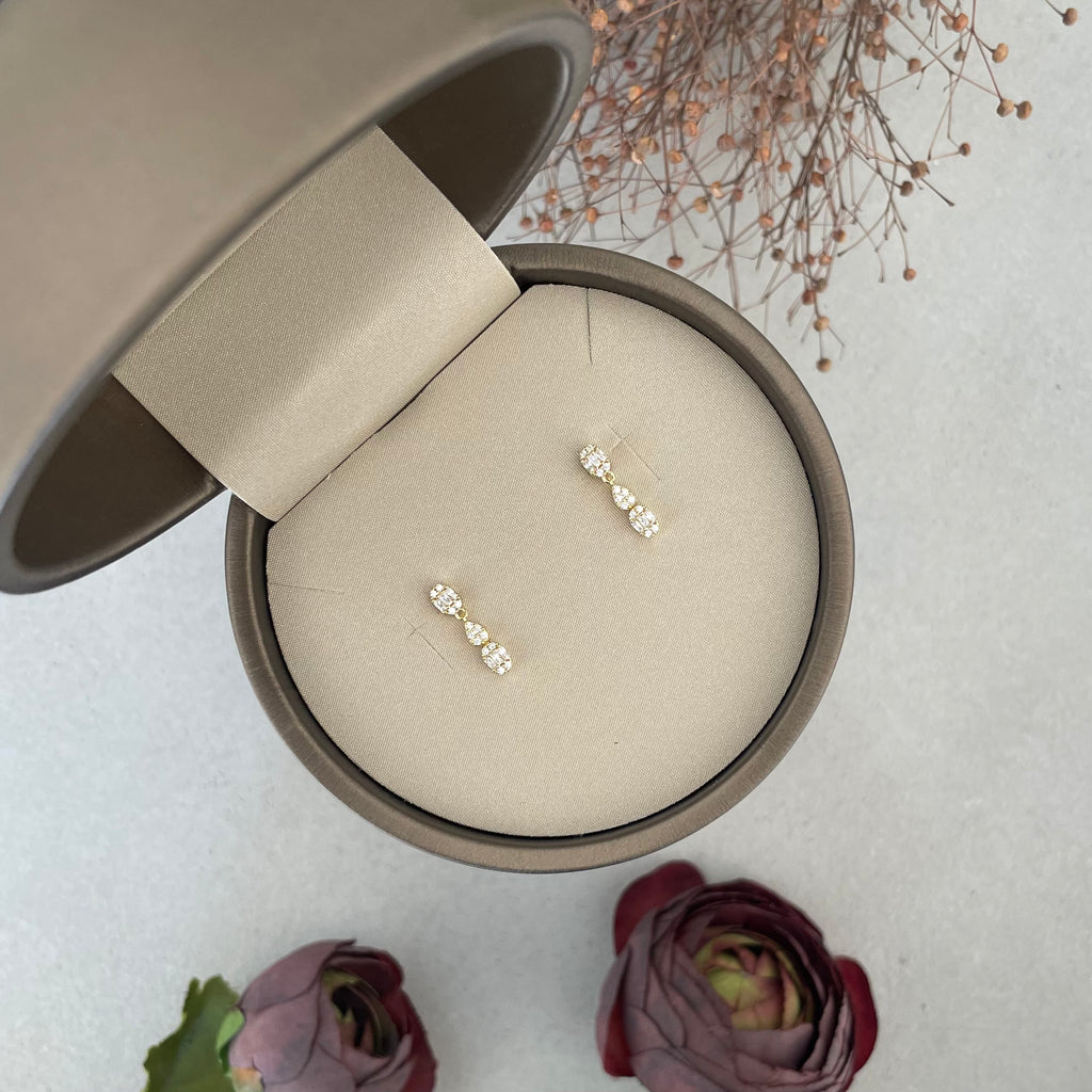 تصنع كل قطعة وفقا لأعلى معايير الجودة وباستخدام أفضل المواد وأعلاها جودة. أقراط بتصميم أنيق وناعم من الفضة مطلية بالذهب عيار 18 قيراط ومزينة بفص في المنتصف.