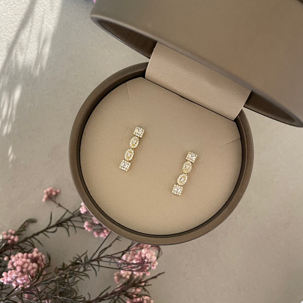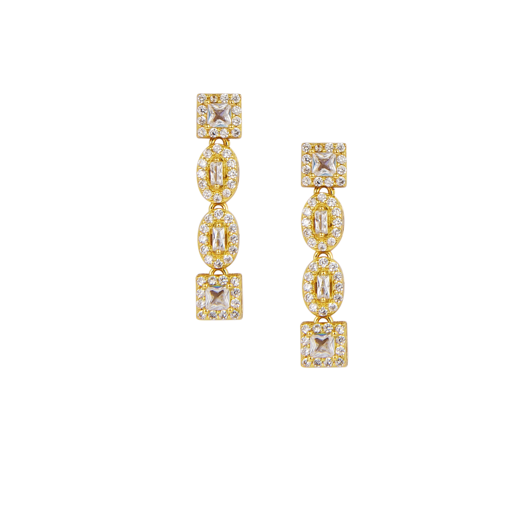 تصنع كل قطعة وفقا لأعلى معايير الجودة وباستخدام أفضل المواد وأعلاها جودة. أقراط بتصميم أنيق وناعم من الفضة مطلية بالذهب عيار 18 قيراط ومزينة بفص في المنتصف.