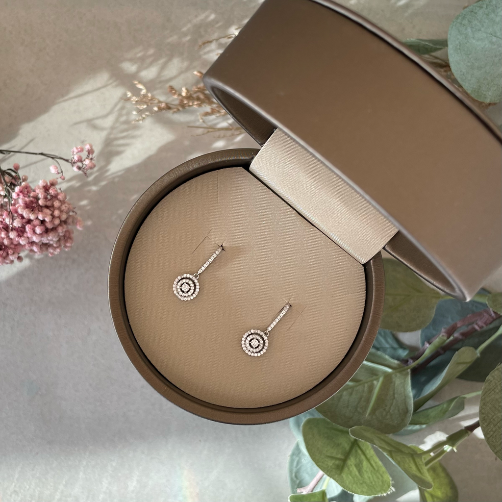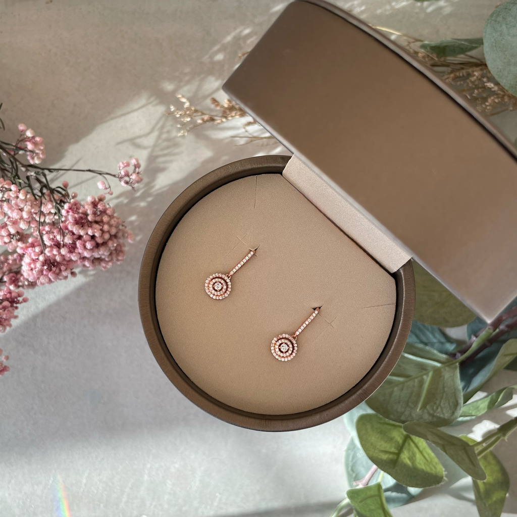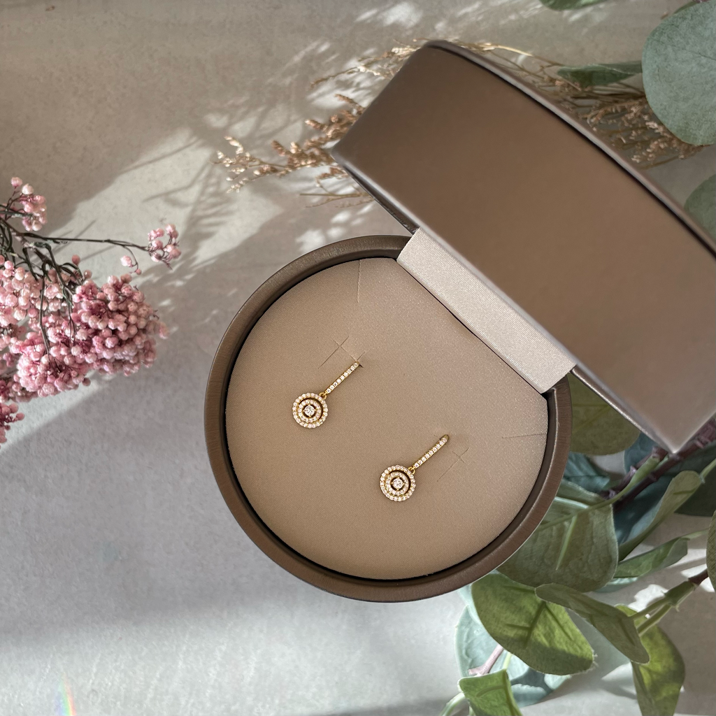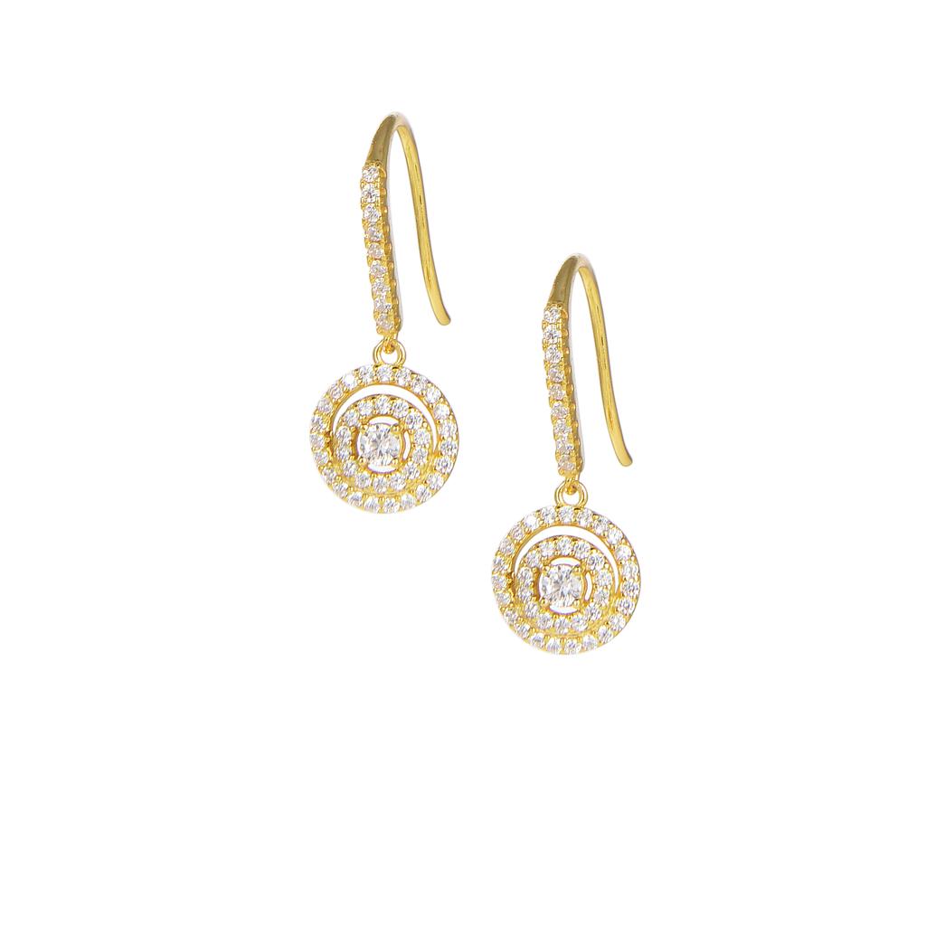 تصنع كل قطعة وفقا لأعلى معايير الجودة وباستخدام أفضل المواد وأعلاها جودة. أقراط بتصميم أنيق وناعم من الفضة مطلية بالذهب عيار 18 قيراط ومزينة بفص في المنتصف.
