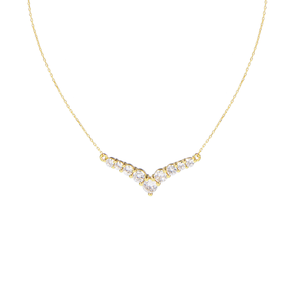 تصنع كل قطعة وفقا لأعلى معايير الجودة وباستخدام أفضل المواد وأعلاها جودة. عقد رقيق وناعم من الفضة مطلي بالذهب عيار 18 مزين بفصوص ع دائرية متلألئة تطوق قلادة لامعة بكل أناقة .