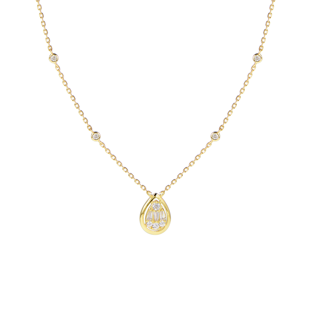 تصنع كل قطعة وفقا لأعلى معايير الجودة وباستخدام أفضل المواد وأعلاها جودة. عقد رقيق وناعم من الفضة مطلي بالذهب عيار 18 مزين بفصوص ع دائرية متلألئة تطوق قلادة لامعة بكل أناقة .