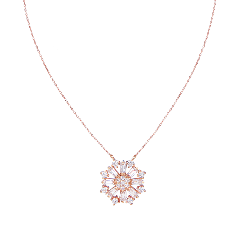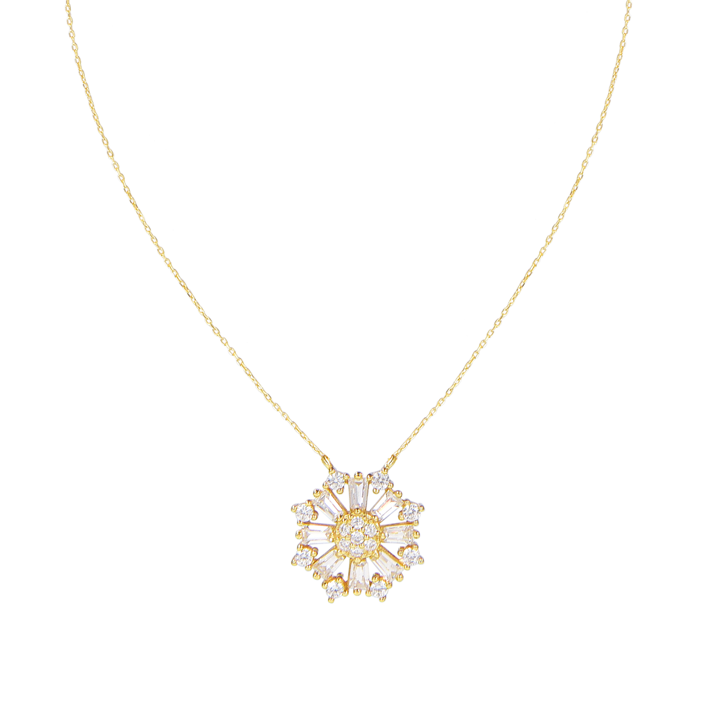 تصنع كل قطعة وفقا لأعلى معايير الجودة وباستخدام أفضل المواد وأعلاها جودة. عقد رقيق وناعم من الفضة مطلي بالذهب عيار 18 مزين بفصوص ع دائرية متلألئة تطوق قلادة لامعة بكل أناقة .