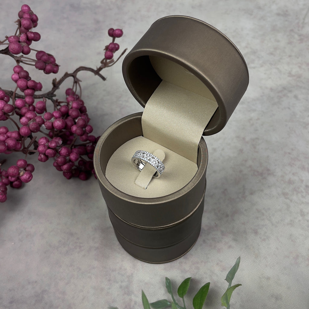 تصنع كل قطعة وفقا لأعلى معايير الجودة وباستخدام أفضل المواد وأعلاها جودة. هذه القطعة عبارة عن خاتم مطلي بالذهب عيار 18 قيراط بخطين متلألئين مع زركون على شكل ورده في المنتصف.