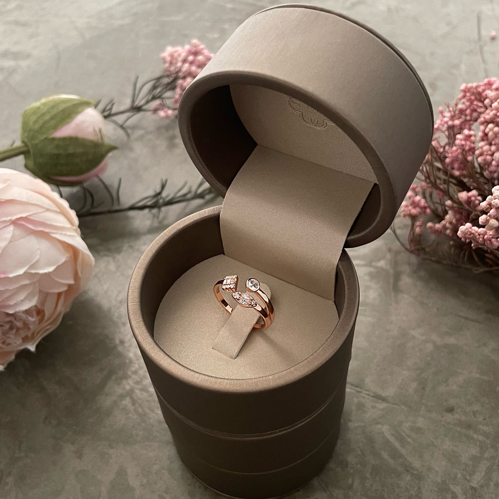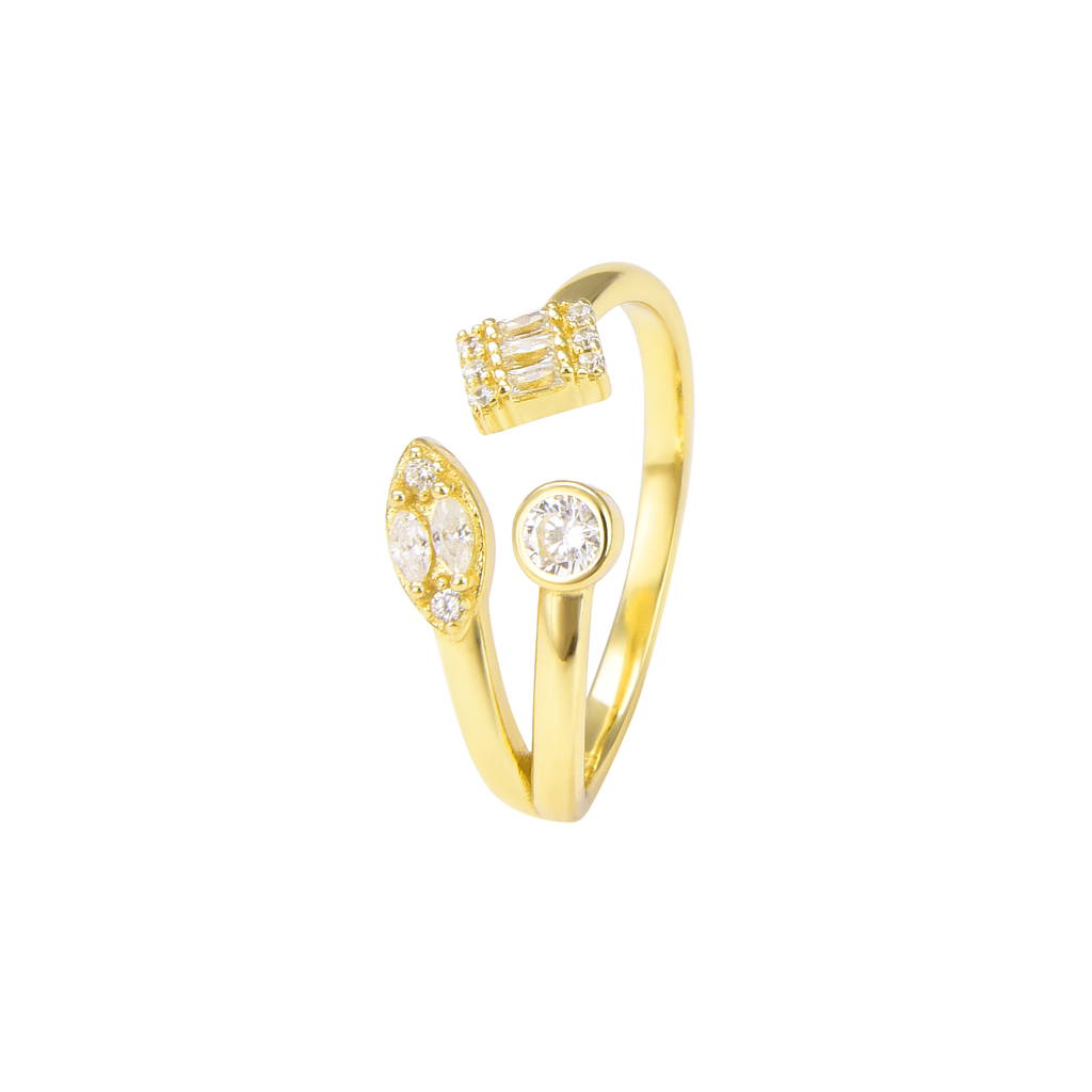 تصنع كل قطعة وفقا لأعلى معايير الجودة وباستخدام أفضل المواد وأعلاها جودة. هذه القطعة عبارة عن خاتم مطلي بالذهب عيار 18 قيراط بخطين متلألئين مع زركون على شكل ورده في المنتصف.