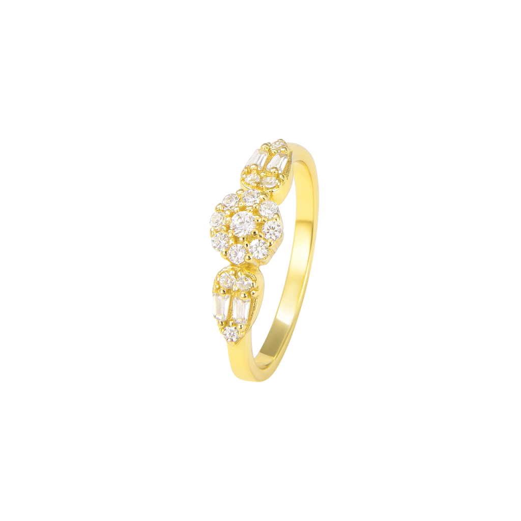 تصنع كل قطعة وفقا لأعلى معايير الجودة وباستخدام أفضل المواد وأعلاها جودة. هذه القطعة عبارة عن خاتم مطلي بالذهب عيار 18 قيراط بخطين متلألئين مع زركون على شكل ورده في المنتصف.