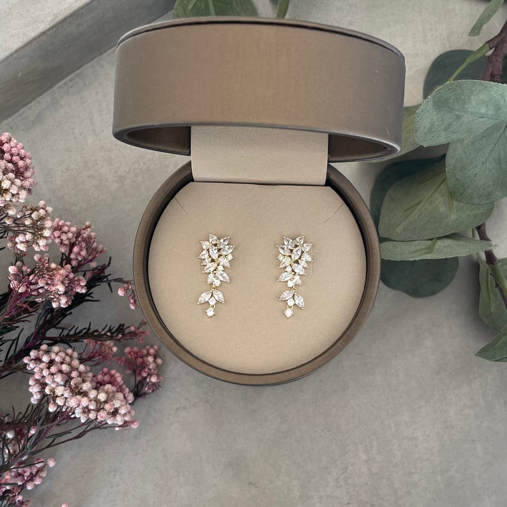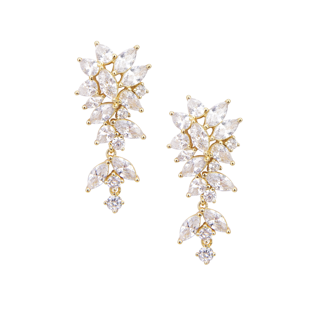 تصنع كل قطعة وفقا لأعلى معايير الجودة وباستخدام أفضل المواد وأعلاها جودة. أقراط بتصميم أنيق وناعم من الفضة مطلية بالذهب عيار 18 قيراط ومزينة بفص في المنتصف.