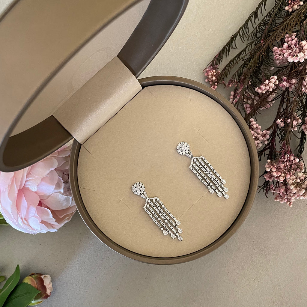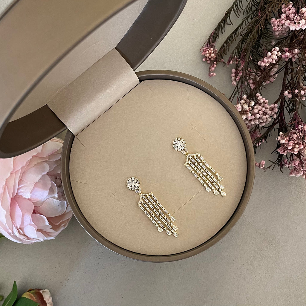 تصنع كل قطعة وفقا لأعلى معايير الجودة وباستخدام أفضل المواد وأعلاها جودة. أقراط بتصميم أنيق وناعم من الفضة مطلية بالذهب عيار 18 قيراط ومزينة بفص في المنتصف.