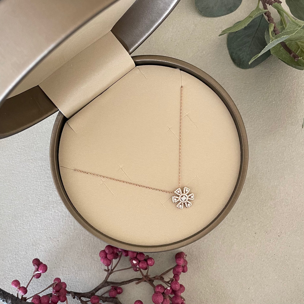 • يتوفر العقد بثلاثة ألوان: الذهب الأبيض والذهب الوردي والذهب الأصفر.