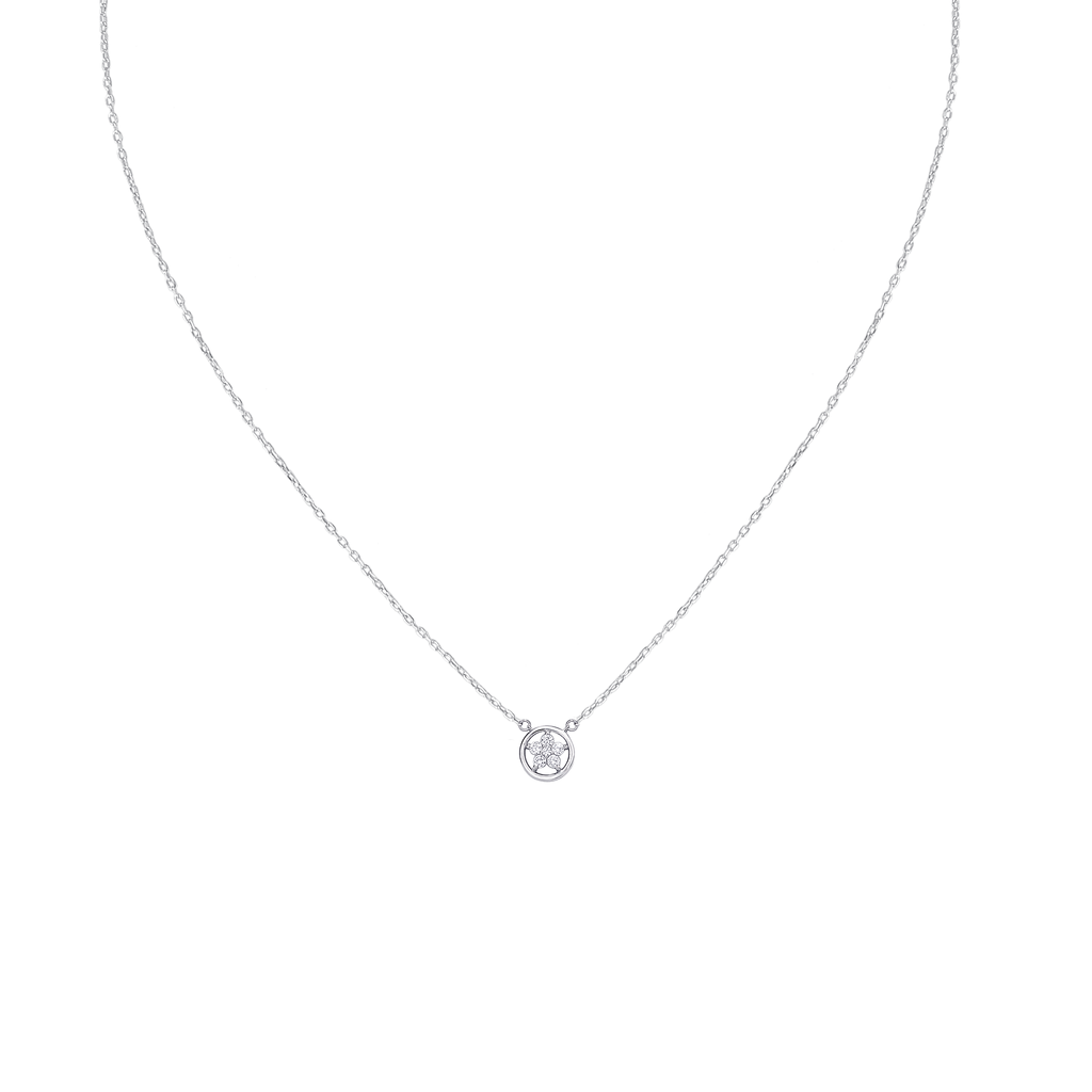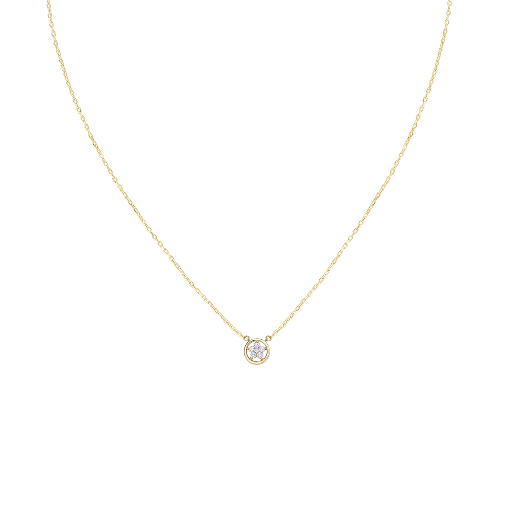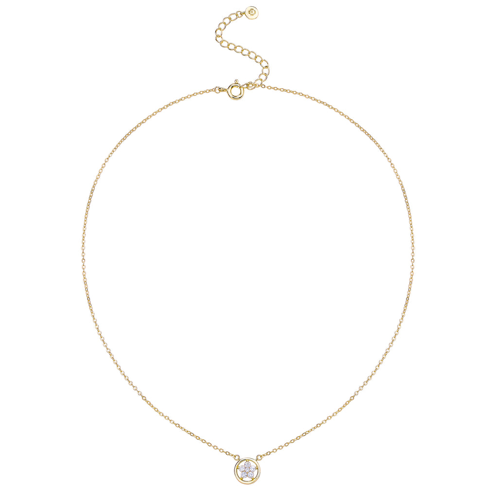 تصنع كل قطعة وفقا لأعلى معايير الجودة وباستخدام أفضل المواد وأعلاها جودة. عقد رقيق وناعم من الفضة مطلي بالذهب عيار 18 مزين بفصوص ع دائرية متلألئة تطوق قلادة لامعة بكل أناقة .
