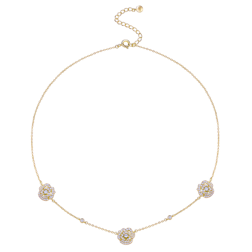 تصنع كل قطعة وفقا لأعلى معايير الجودة وباستخدام أفضل المواد وأعلاها جودة. عقد رقيق وناعم من الفضة مطلي بالذهب عيار 18 مزين بفصوص ع دائرية متلألئة تطوق قلادة لامعة بكل أناقة .