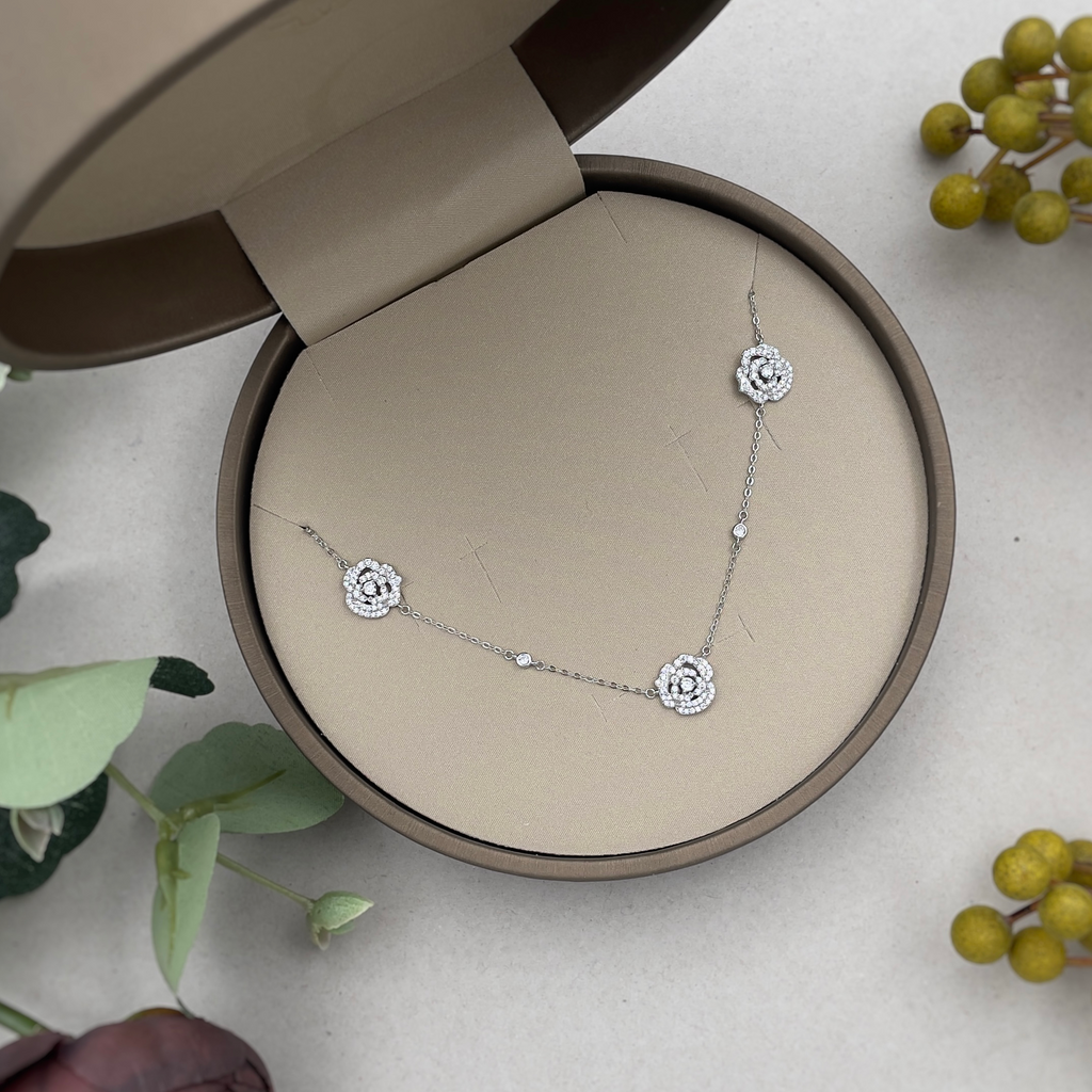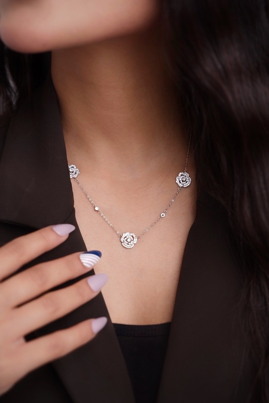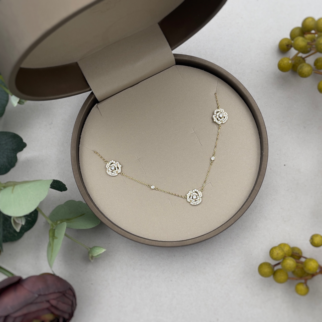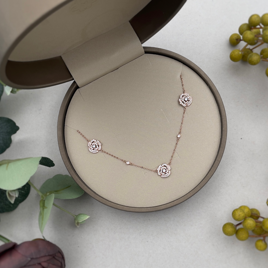 • يتوفر العقد بثلاثة ألوان: الذهب الأبيض والذهب الوردي والذهب الأصفر.