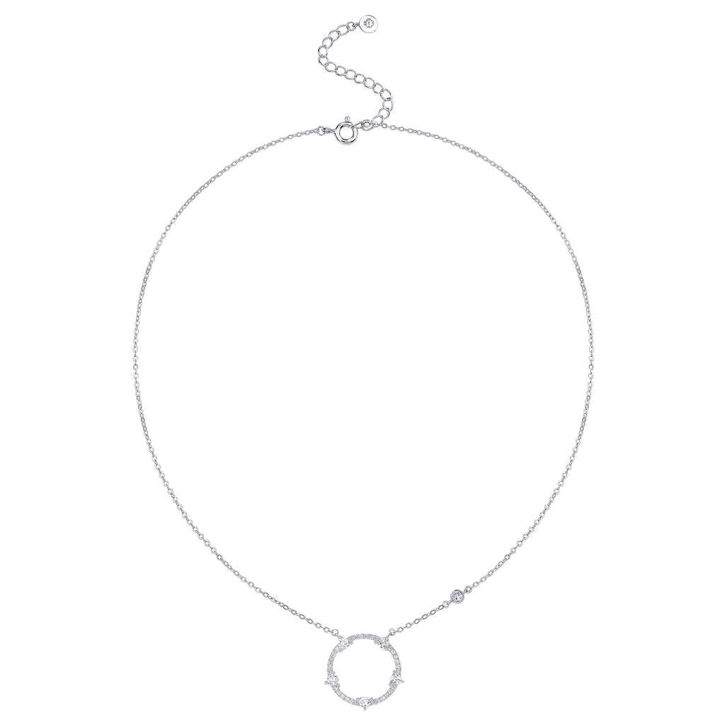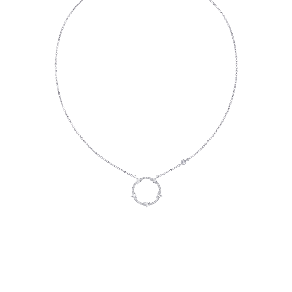 تصنع كل قطعة وفقا لأعلى معايير الجودة وباستخدام أفضل المواد وأعلاها جودة. عقد رقيق وناعم من الفضة مطلي بالذهب عيار 18 مزين بفصوص ع دائرية متلألئة تطوق قلادة لامعة بكل أناقة .