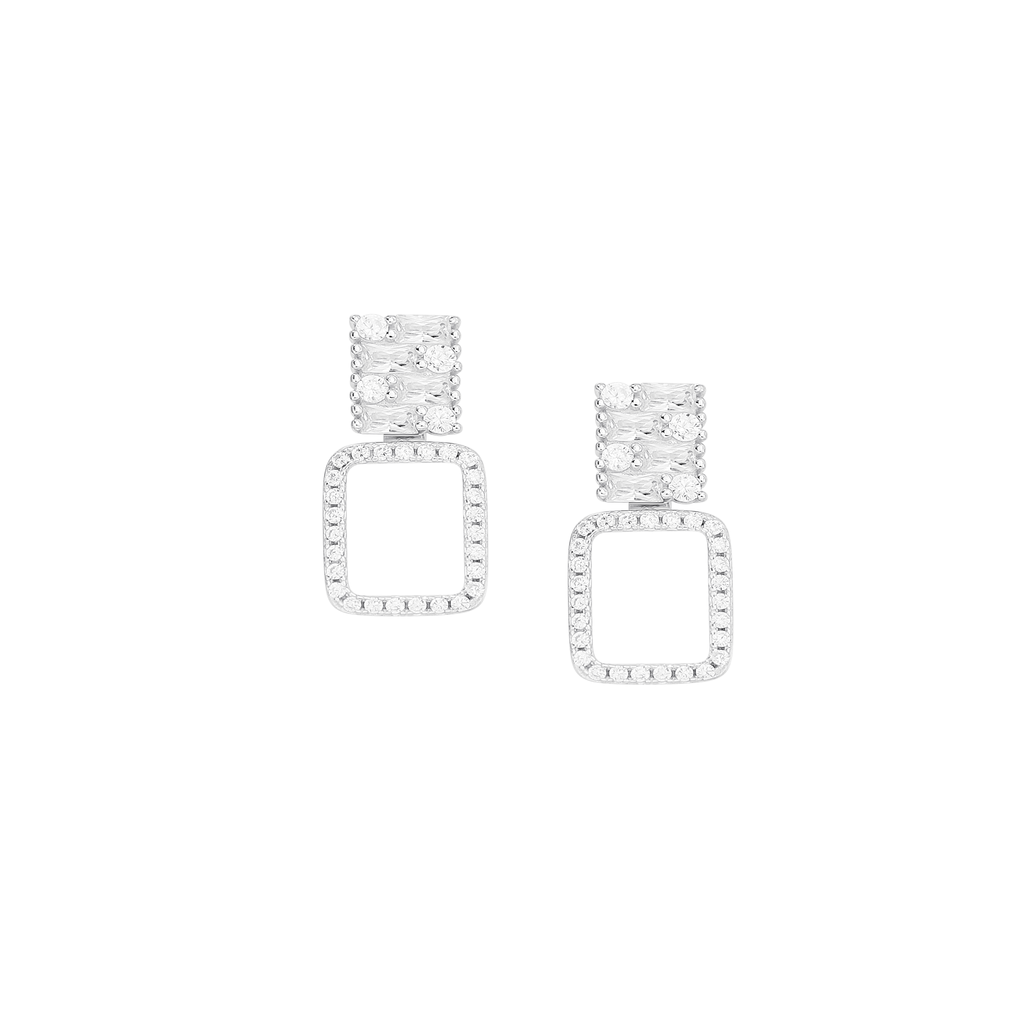 تصنع كل قطعة وفقا لأعلى معايير الجودة وباستخدام أفضل المواد وأعلاها جودة. أقراط بتصميم أنيق وناعم من الفضة مطلية بالذهب عيار 18 قيراط ومزينة بفص في المنتصف.