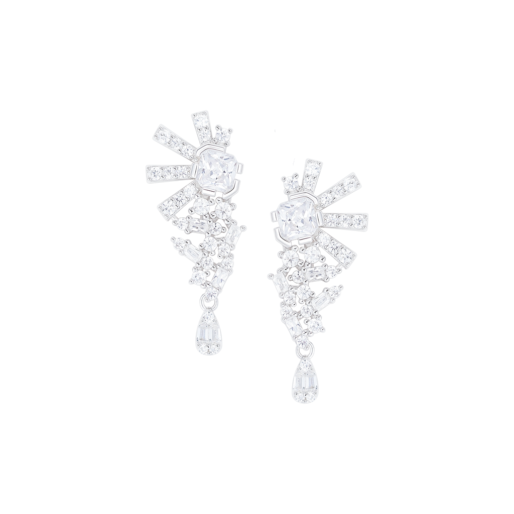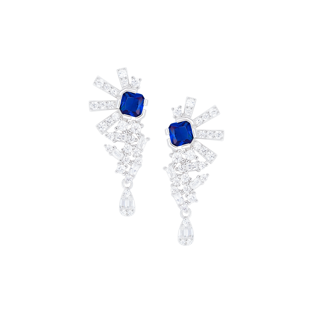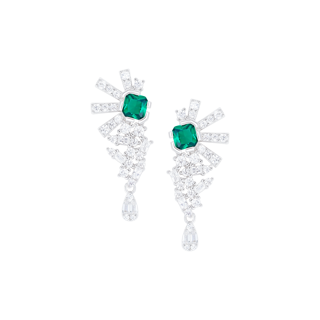 تصنع كل قطعة وفقا لأعلى معايير الجودة وباستخدام أفضل المواد وأعلاها جودة. أقراط بتصميم أنيق وناعم من الفضة مطلية بالذهب عيار 18 قيراط ومزينة بفص ملون بقصة الزمرد في المنتصف.