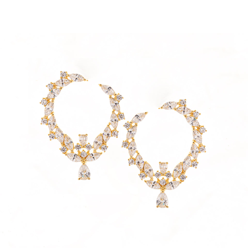 تصنع كل قطعة وفقا لأعلى معايير الجودة وباستخدام أفضل المواد وأعلاها جودة. أقراط بتصميم أنيق وناعم من الفضة مطلية بالذهب عيار 18 قيراط ومزينة بفص ملون في المنتصف.