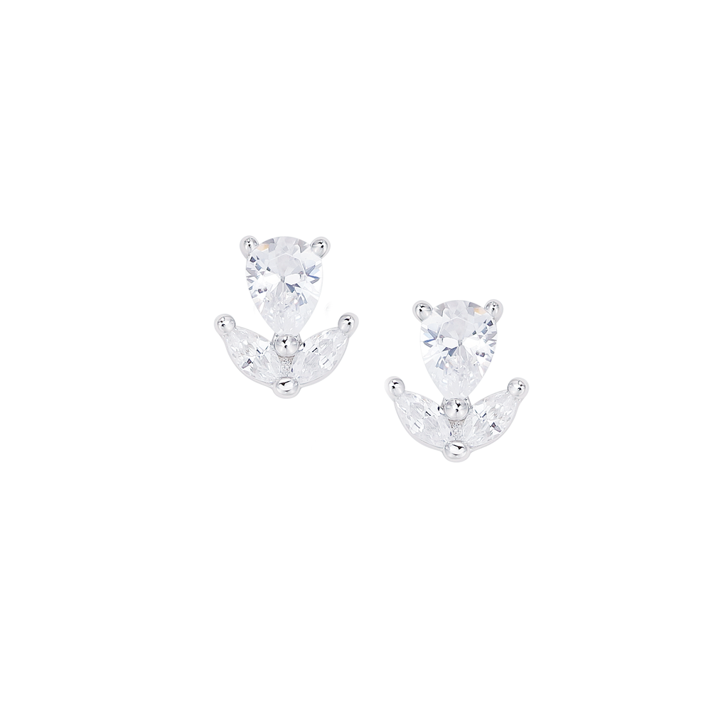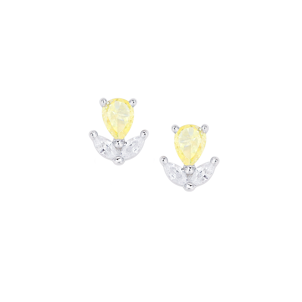 تصنع كل قطعة وفقا لأعلى معايير الجودة وباستخدام أفضل المواد وأعلاها جودة. أقراط بتصميم أنيق وناعم من الفضة مطلية بالذهب عيار 18 قيراط ومزينة بفص ملون بقصة الزمرد في المنتصف.