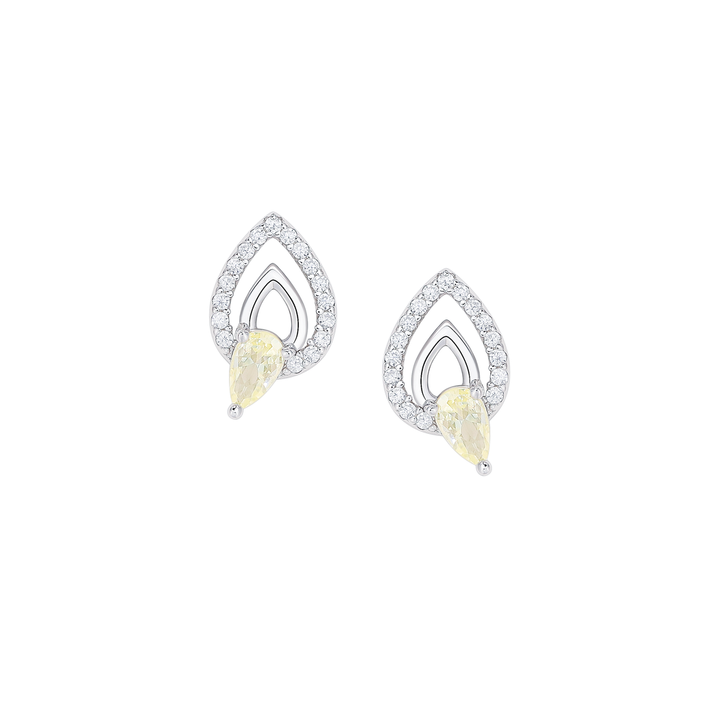 تصنع كل قطعة وفقا لأعلى معايير الجودة وباستخدام أفضل المواد وأعلاها جودة. أقراط بتصميم أنيق وناعم من الفضة مطلية بالذهب عيار 18 قيراط ومزينة بفص ملون بقصة الزمرد في المنتصف.