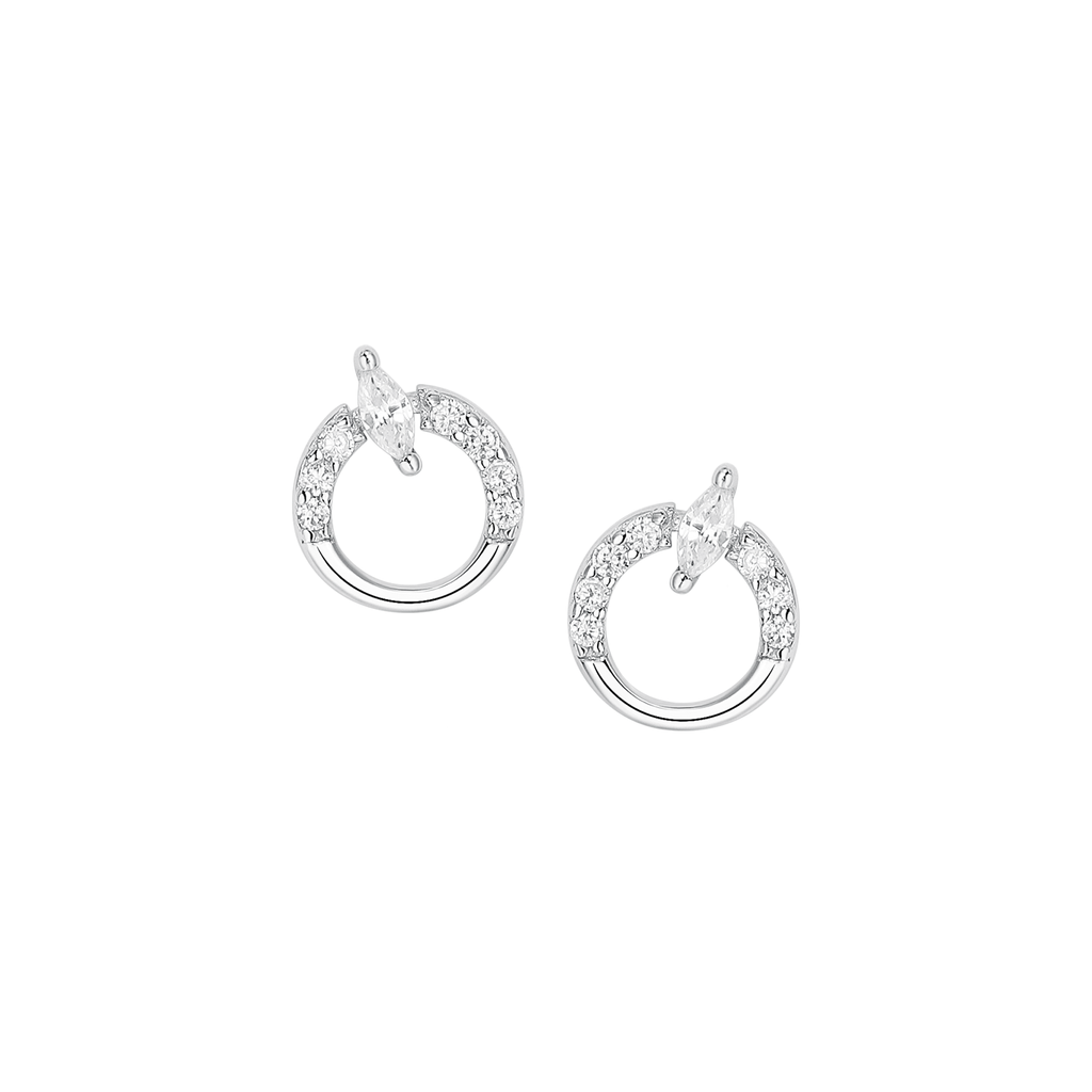 تصنع كل قطعة وفقا لأعلى معايير الجودة وباستخدام أفضل المواد وأعلاها جودة. أقراط بتصميم أنيق وناعم من الفضة مطلية بالذهب عيار 18 قيراط ومزينة بفص ملون بقصة الزمرد في المنتصف.