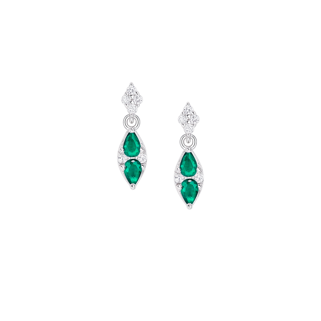 تصنع كل قطعة وفقا لأعلى معايير الجودة وباستخدام أفضل المواد وأعلاها جودة. أقراط بتصميم أنيق وناعم من الفضة مطلية بالذهب عيار 18 قيراط ومزينة بفص ملون بقصة الزمرد في المنتصف.