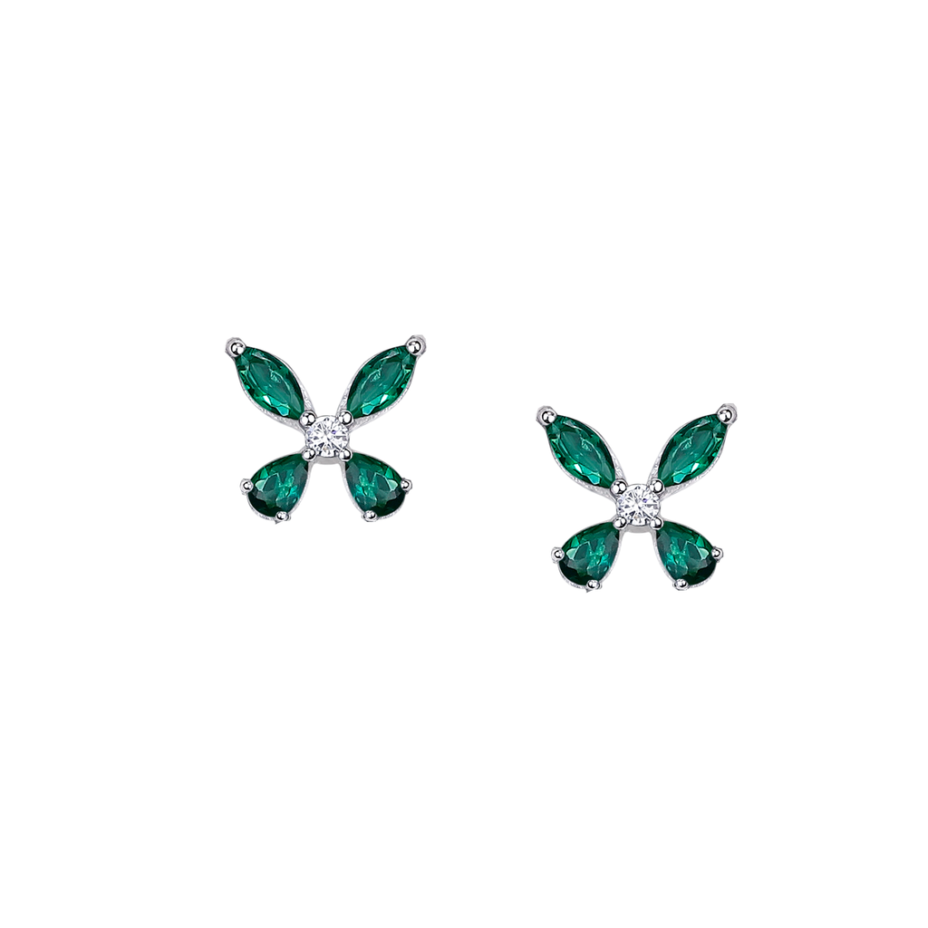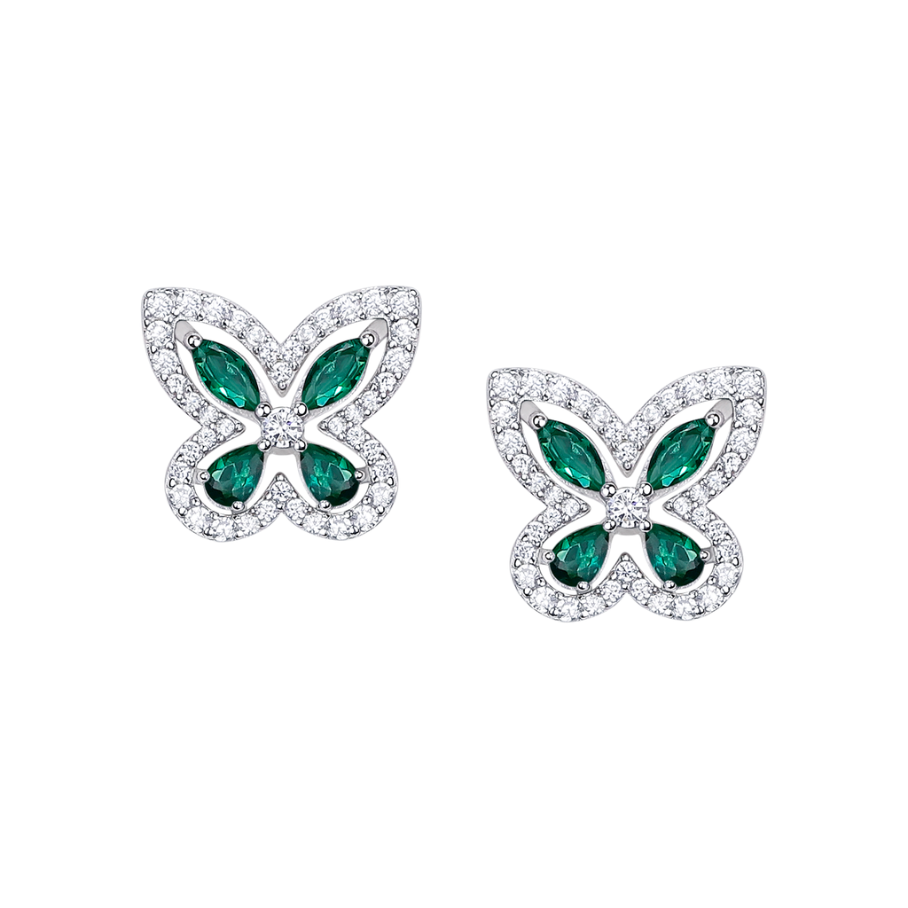 تصنع كل قطعة وفقا لأعلى معايير الجودة وباستخدام أفضل المواد وأعلاها جودة. أقراط بتصميم أنيق وناعم من الفضة مطلية بالذهب عيار 18 قيراط ومزينة بفص ملون بقصة الزمرد في المنتصف.