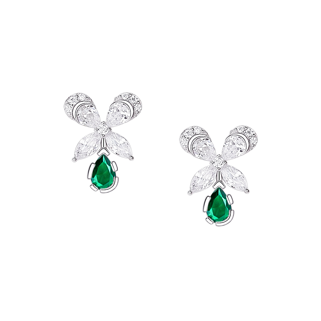 تصنع كل قطعة وفقا لأعلى معايير الجودة وباستخدام أفضل المواد وأعلاها جودة. أقراط بتصميم أنيق وناعم من الفضة مطلية بالذهب عيار 18 قيراط ومزينة بفص ملون بقصة الزمرد في المنتصف.
