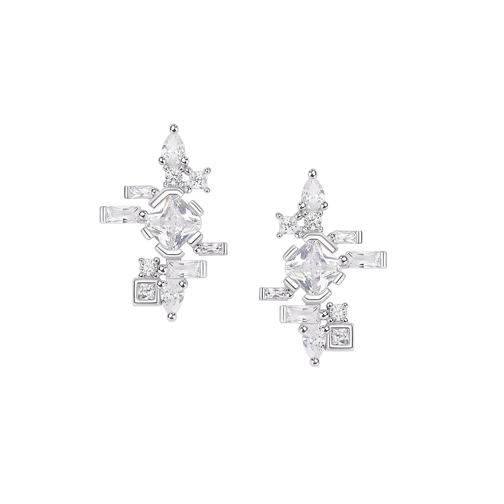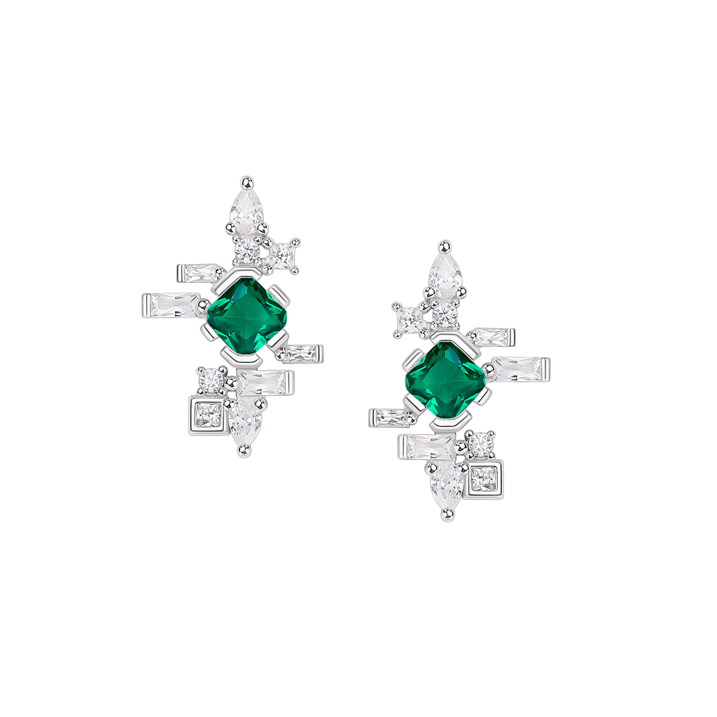 تصنع كل قطعة وفقا لأعلى معايير الجودة وباستخدام أفضل المواد وأعلاها جودة. أقراط بتصميم أنيق وناعم من الفضة مطلية بالذهب عيار 18 قيراط ومزينة بفص ملون بقصة الزمرد في المنتصف.