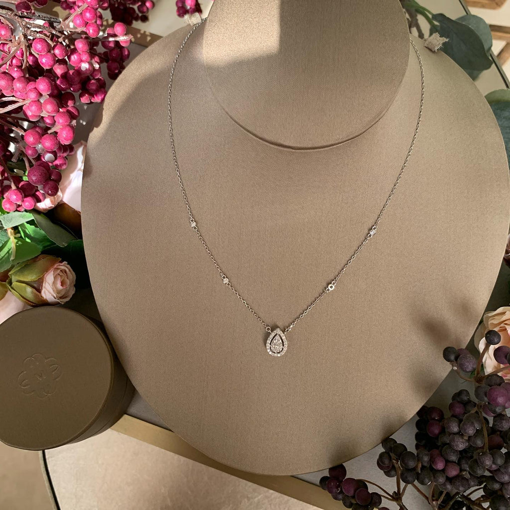 محيط أغلب القلائد هو ٤٠ سم وتأتي بسلسلة إضافية طولها ٥ سم لتمنحك خيار لبسها واسعة وفضفاضة أو قصيرة ومريحة. كما نوصي بالاطلاع على تفاصيل المنتج للحصول على المعلومات الخاصة بالقطة بشكل أدق.