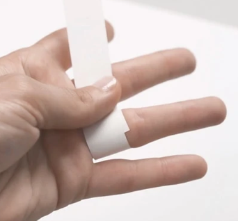 2. لفِ الورقة / الخيط حول إصبعك وحددي المكان الذي يلتقي فيه طرفي الشريط.