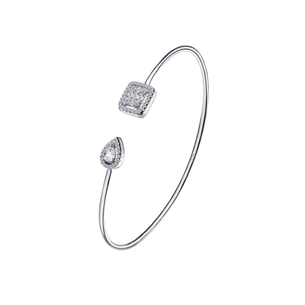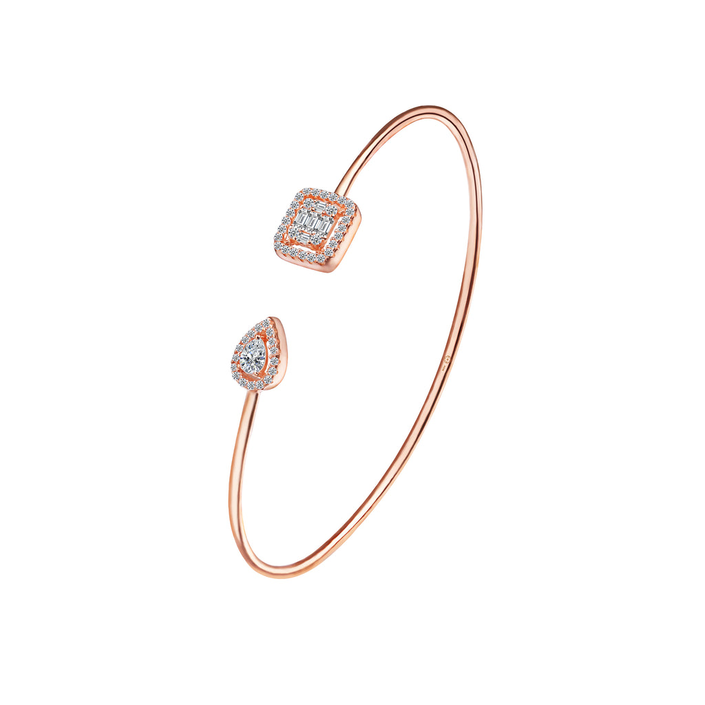 18k gold-plated bracelet featuring a large pear-shaped stone opposite to a cushion-cut stone.